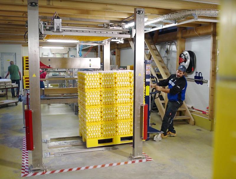 Auch ein Praktiker erzählte von seinen Erfahrungen. Rolf Pfeiffer führt mit seiner Partnerin sowie zwei Betriebszweiggemeinschaftern einen Betrieb in Ammerzwil bei Schüpfen BE. Pfeiffer hat 16'000 Freilandlegehennen und 5000 Hennen in Bodenhaltung. Er setzt auf seinem Betrieb für das Verpacken der Eier einen Farmpacker ein und hat seit neuestem auch einen M’eggbot. Dieser Roboter stapelt die 10er-Höcker-Stapel automatisch auf ein Palett. «Dies spart Zeit und schont den Rücken», sagt Pfeiffer. «Ich würde ihn nicht mehr hergeben».