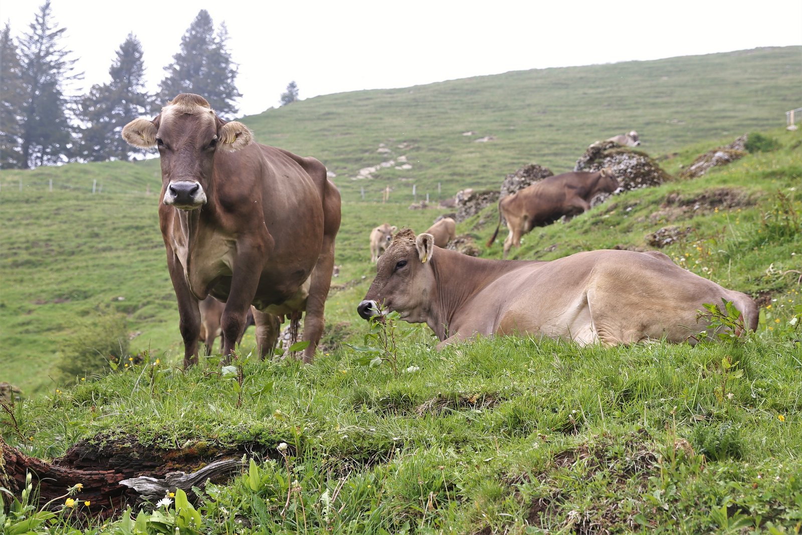 Da geht es aber «zünftig obsi». Schweissgebadet und mit hohem Puls treffe ich inmitten von Nebelschwaden auf der Alp «Ober Hütte» ein. Diese Strecke, welche durch unwegsames Gelände im Abbruchgebiet vom Goldauer Bergsturz führt, sollen die schweren Braunviehkühe der Züchterfamilie Kennel zu Fuss bewältigt haben? Und das zusätzlich mit einer imposanten Fahrtreichel um den Hals, fragt sich der BauernZeitung-Reporter.…