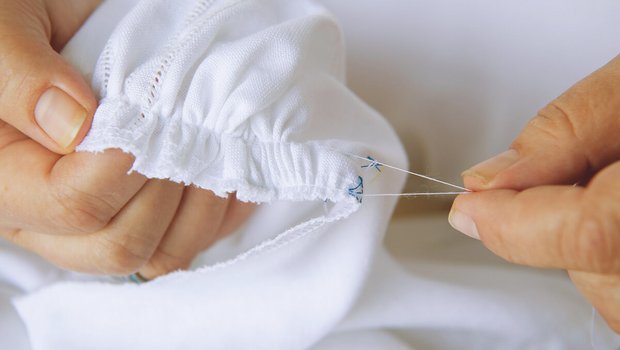 «Die Falten kommen dicht übereinander, so dass der Kres Fülle bekommt. Jede einzelne Falte nähe ich mit sieben Stichen fest. Bis ich die benötigten 63 Zentimeter neben meinen Alltagsarbeiten fertig habe, brauche ich zwei bis drei Wochen.» Pascale Haefliger ist Mutter von drei Töchtern und betreibt mit ihrem Mann einen Landwirtschaftbetrieb mit Milchproduktion, Aufzuchttieren und 200 Mastschweinen, sie arbeitet in allen Bereichen mit.