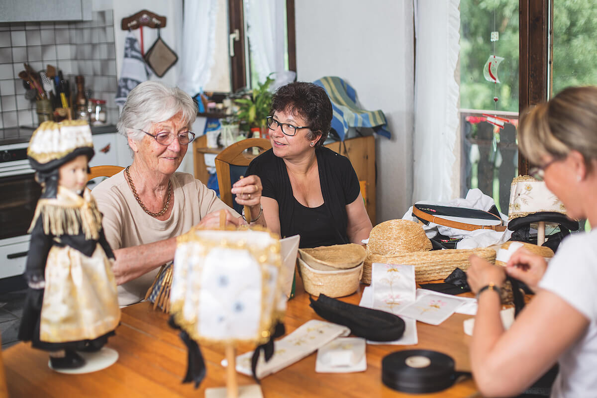 Die drei Hobby-Hutmacherinnen sind in der Trachtenvereinigung Ried-Brig engagiert, zu der 60 Frauen jeglichen Alters gehören. Brigitte Steiner: «Wir sind bei allen Dorf- und Kirchenanlässen in unserer Tracht dabei, servieren zum Beispiel einen Apéro. Da wir so viele sind, steht jede nur ein bis zweimal im Jahr im Einsatz. Es ist ein unkomplizierter Verein, jede hilft jeder, wenn etwas fehlt. Diese guten Sozialkontakte halten uns zusammen.»