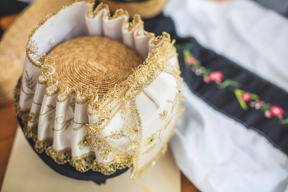 Von Hand bestickt ist auch das zehn Zentimeter breite Seidenband, das rund um den Strohhut festgesteckt wird. «Dazu wird die Stickerei erst detailliert aufgezeichnet», erklärt Brigitte Steiner, die ursprünglich Damenschneiderin gelernt hat, heute aber im Management einer Behindertenorganisation tätig ist. «Im Dorf schaut man zudem darauf, dass nicht zwei Frauen das gleiche Stickmuster auf dem Hut haben. So viel Individualität muss sein.»