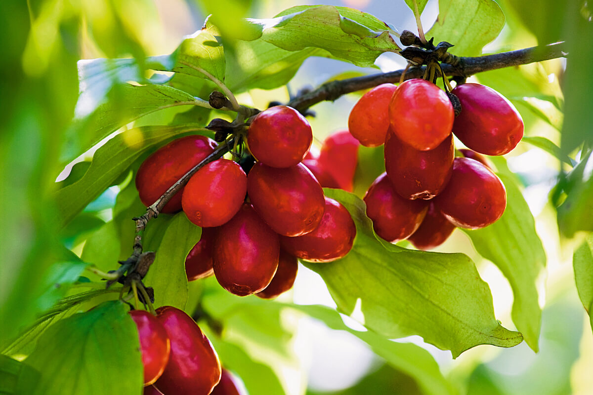 Die Kornelkirsche (Cornus mas) blüht je nach Region schon ab Ende Februar. Ab August/September sind