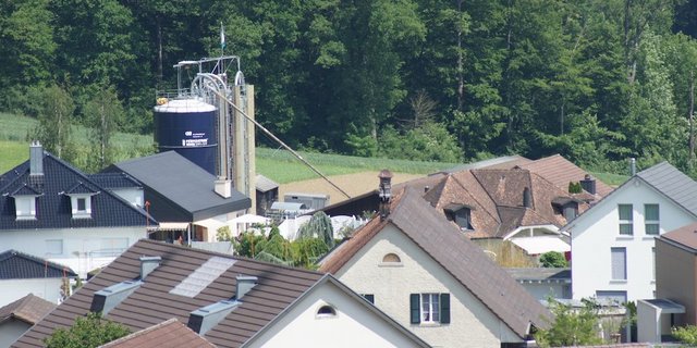Das Areal für den geplanten Neubau der Milchviehscheune bei Landwirt X, viel weiter weg von Wohngebäuden als bisher. Im Hintergrund die Schweinescheune, wo ein Biowäscher vorgesehen ist.