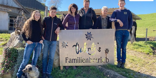 Ferdinand und Barbara Oehrli mit den Kindern Linda, Florian und Severin. Auch die Mutter von Ferdinand, Elisabeth Oehrli, ist eine tragende Stütze des Betriebs.