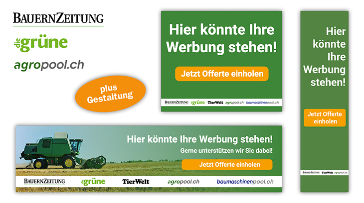 Bei uns erreichen Sie Ihre Zielgruppe in den Bereichen der Landwirtschaft, Landtechnik, Tiere, Natur und Umwelt. Mit Displaywerbung können Sie Ihr Image verstärken, die Umsatzsteigerung fördern und Ihre Zielgruppe ohne Streuverluste ansprechen. Dazu können Ihre potenziellen Kundinnen und Kunden direkt auf Ihre Webseite geführt werden.
