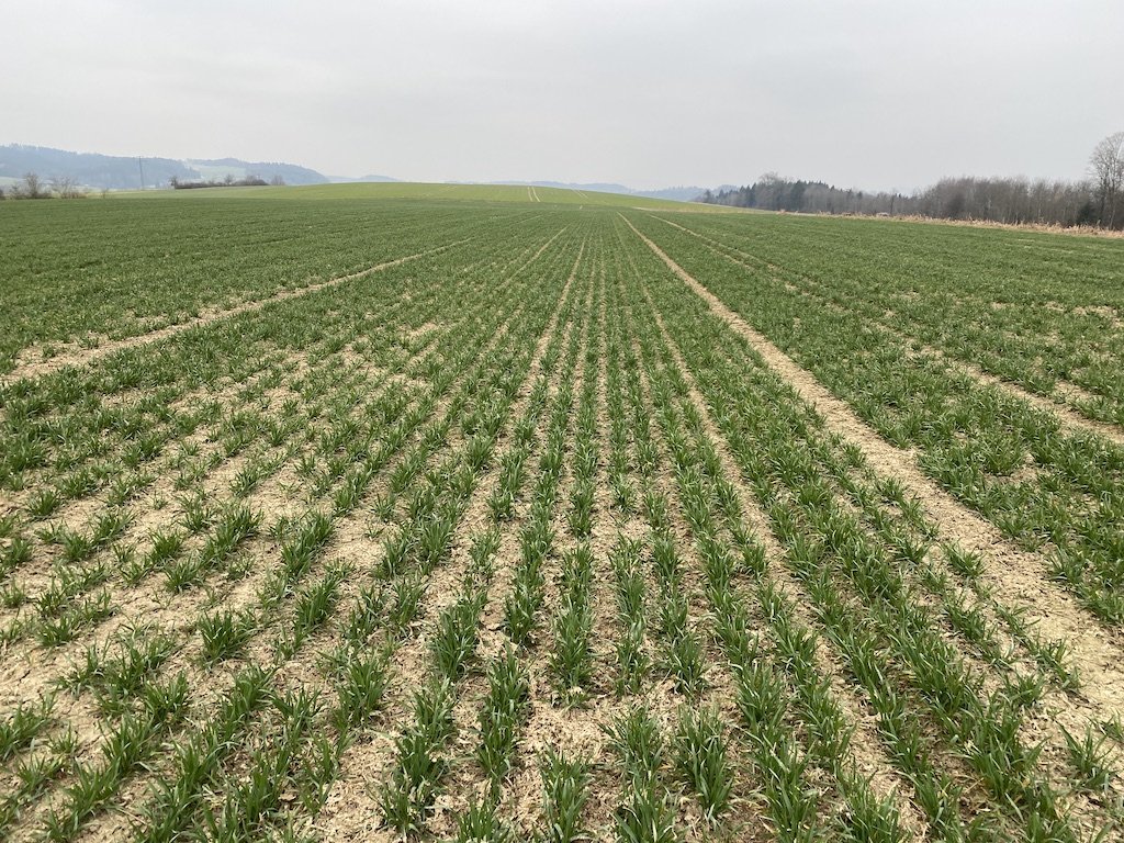 Um Gras – speziell hartnäckig sei italienisches Raigras – ohne Pflug zu räumen, setzte Jürg Lauper Glyphosat ein. Auch dort, wo sich ganze Horste versamten Raigrases in der abgefrorenen Gründünung etablieren konnten, wird er nicht darum herumkommen. Die Alternative wäre der Pflug. «Aber ich bin mir sicher, dass damit mehr kaputt ginge», bemerkt der Landwirt.
