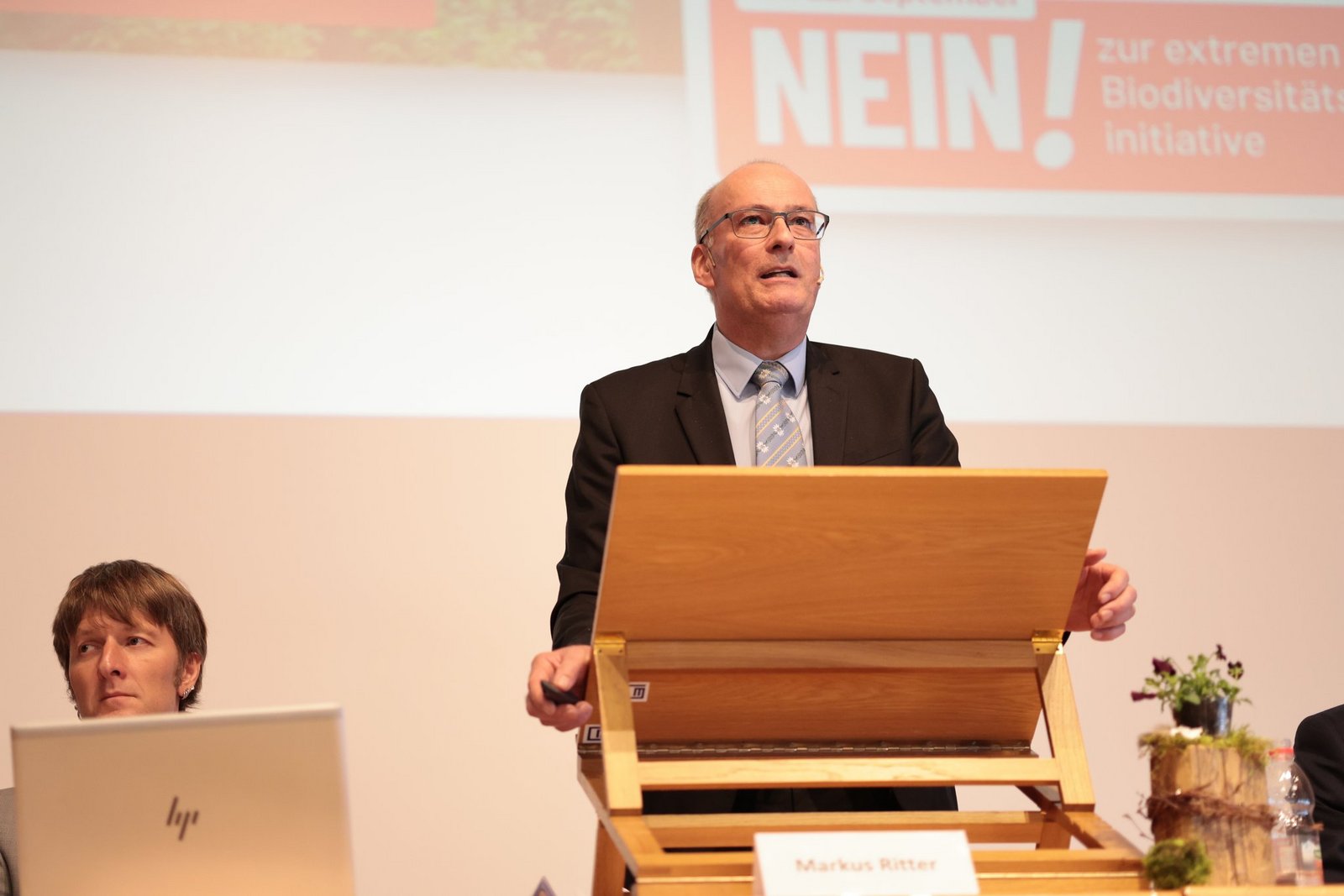 «Wenn wir dann in der Arena sind zu der Biodiversitäts-Initiative, dann lasse ich zuerst die erneuerbaren Energien auf den Naturschutz los und den Rest, der dann noch übrig bleibt, den räume ich ab.» Die Rede von Markus Ritter, Präsident des Schweizer Bauernverbands und Mitte-Nationalrat für den Kanton St. Gallen, war ein wahres Heimspiel an der Delegiertenversammlung (DV) des St. Galler Bauernverbands. Durchgeführt…