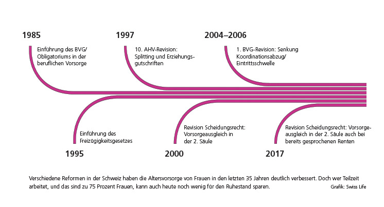 Wer denkt bei der Heirat schon an eine mögliche Scheidung? Und kaum eine junge Mutter, die ihr Arbeitspensum wegen der Kinder reduziert, hat ihre Altersvorsorge im Blick. Das hat Konsequenzen auf die Altersvorsorge: Heutige Rentnerinnen in der Schweiz erhalten im Durchschnitt über ein Drittel weniger Rente als Männer. Das zeigen Studien des Bundesamts für Sozialversicherungen und des Lebensversicherungskonzerns…