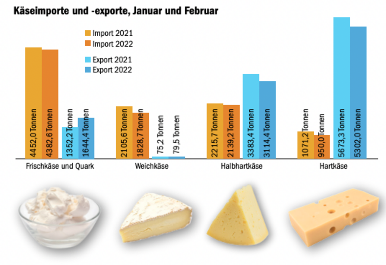 Der Käsemarkt war in den letzten zwei Jahren für fast alle Beteiligten ein Eldorado. Die Produktion legte zu, und die Exporte florierten. Schon länger warnt die Branche allerdings vor einem Abflauen des Trends, der in erster Linie durch den vermehrten Heimkonsum während Corona getrieben war. Gewinner und Verlierer Die Zahlen der Treuhandstelle Milch bestätigen nun diese Befürchtungen, im Februar nahmen die Exporte…