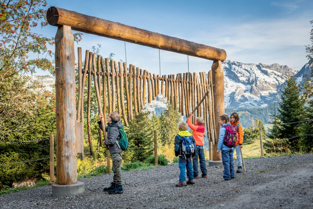 Der Klangweg Toggenburg zwischen Alt St. Johann und Wildhaus im Kanton St. Gallen empfiehlt sich besonders für Familien. Am Fusse der Churfirsten erstreckt sich der Klangweg über mehrere Etappen von der Alp Sellamatt über Iltios bis ins Oberdorf und ist bequem mit den Bergbahnen erreichbar. Auf der zehn Kilometer langen Strecke kann man auf 27 ungewöhnlichen Instrumenten spielen. Es hat Grillplätze, Bergrestaurants und Spielplätze.
