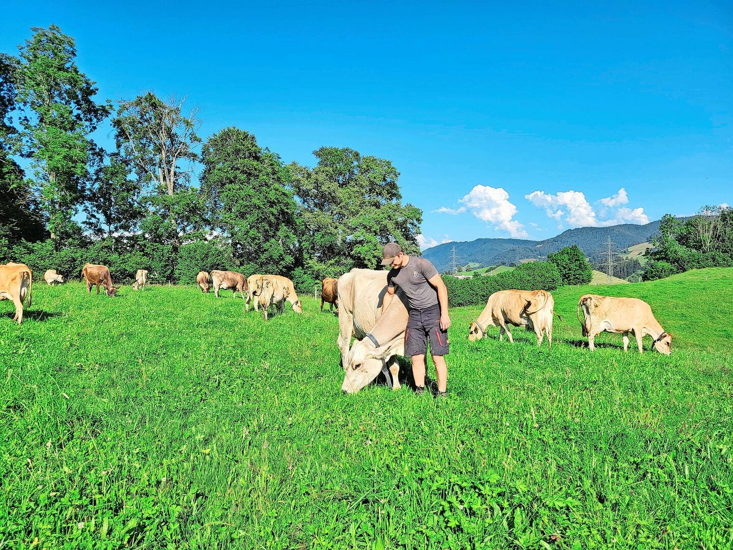 Am liebsten ist die Braunviehkuh aus eigener Zucht auf der Weide. «Annabell liebt es, auf die Weide zu gehen», erzählt der junge Landwirt. Weil die Familie noch an ein Schwingfest gehen wollte, habe sein Vater die Kühe kürzlich bereits früher als üblich von der Weide geholt, erzählt Röllin. Während alle anderen Kühe brav von der Weide in den Stall trotteten, blieb Annabell ganz alleine auf der Wiese zurück.