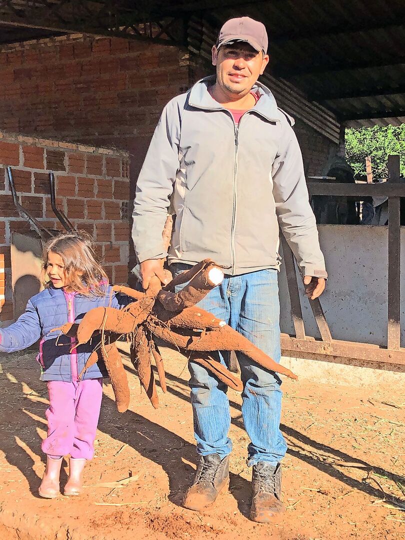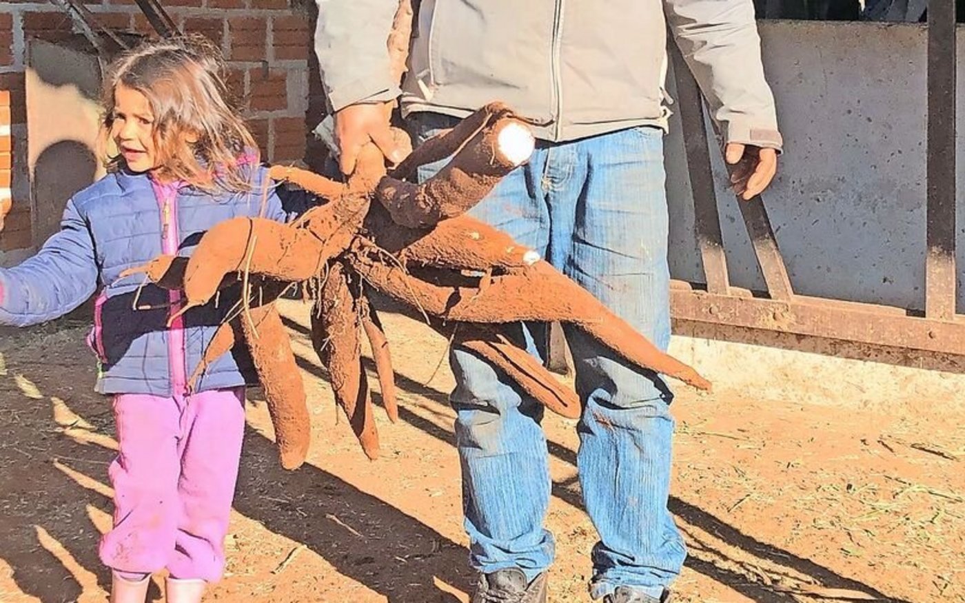 Soeben ist unser Maniokfeld nach acht Monaten Pflanzzeit bereit für die Ernte. Unser Maniok ist lecker und nahrhaft und wird biologisch aus samenfestem eigenem Saatgut produziert. Ein wichtiges Grundnahrungsmittel Maniok (Manihot esculenta) ist Teil der Familie der Wolfsmilchgewächse und gehört hier in Paraguay zu den täglichen Grundnahrungsmitteln. Gut durchgekocht, wird es bei jeder Mahlzeit wie Brot dazu…