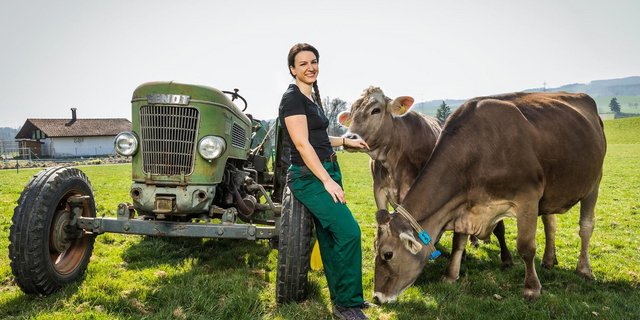 Auf dem Hof macht Lydia Barmettler alles: «Ich bin überall, wo Lukas mich braucht, nur Traktor fahren kann ich nicht.» Im Sommer übernimmt sie zusammen mit dem Schwiegervater oft das Melken und den Stall. Sie schätzt es, dass sie als Bäuerin und Spielgruppenleiterin «total kreativ sein kann, das ist ein echtes Privileg.»