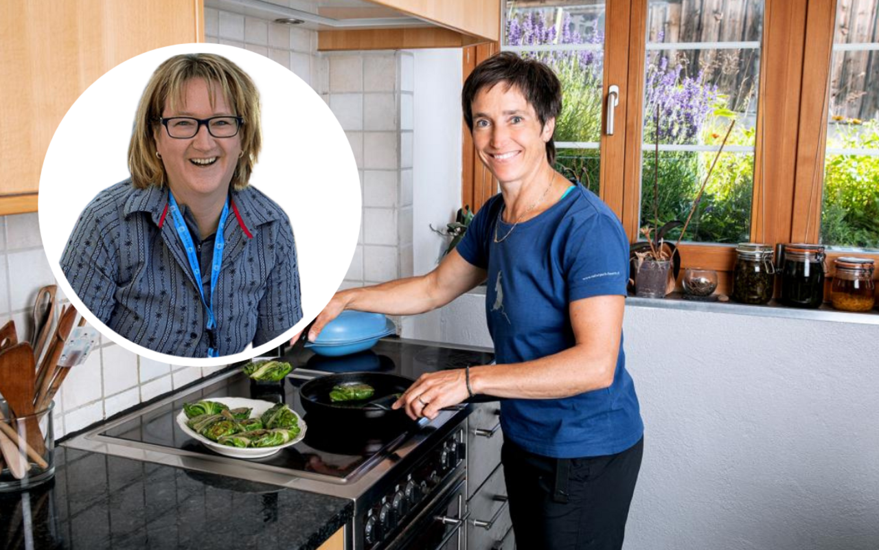 Zur Hauptspeise servierte Regula Schmid den Fleischesserinnen Rindsfilet mit Kräuterkruste, Ofenkartoffeln in Rosenform sowie Karotten und Kefen. Regula Schmid hat das Filet gewürzt und ziehen lassen, was mehr Geschmack bedeutet. Lange Zeit wurde immer propagiert, Marinaden für Fleisch dürften kein Salz enthalten. Dieses würde Wasser entziehen und das Fleisch zäh und trocken werden lassen. Heute gilt vielfach eine andere Meinung. Unbestritten ist, dass das Salz zunächst den Fleischsaft aus dem Fleisch zieht, die sogenannte Osmose. Aber, wie etwa Schweizer Fleisch auf ihrer Website erklärt, passiert danach noch etwas anderes, die sogenannte Diffusion. Der ausgetretene Saft wird – samt dem gelösten Salz – nach einiger Zeit auch wieder vom Fleisch aufgesogen. Es sei alles eine Frage der Zeit. Vor allem bei grossen Fleischstücken, die über mehrere Stunden mariniert werden, zeige nur eine Marinade mit Salz die gewünschte Wirkung: