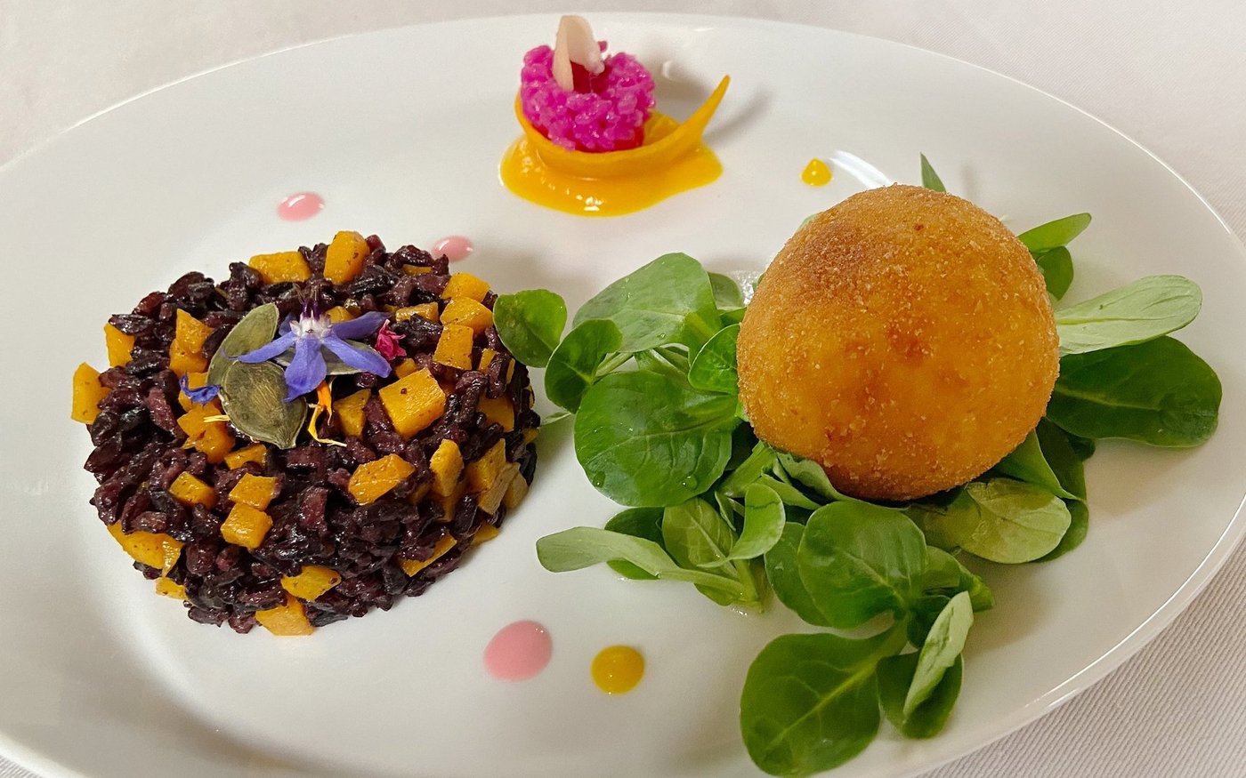 Gemüsebouillon 4,5dl Wasser halbe Karotte halbe Zwiebel Kräuter wie Petersilie, Rosmarin, Maggikraut, je nach Geschmack 1 Prise Salz Wasser in eine Pfanne geben, Gemüse und Kräuter zugeben. Zum Kochen bringen, Pfanne von der Herdplatte nehmen und 20 Min. zugedeckt ziehen lassen. Ein Sieb auf ein Litermass legen und die Gemüsebouillon absieben. Salz zugeben und bereitstellen.[REL 1] Arancini 1 EL Rapsöl…