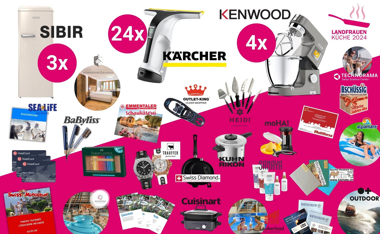 Jede Woche stellen wir Ihnen eine Quizfrage zu den Kandidatinnen und verlosen tolle Preise im Gesamtwert von über 17’000 Franken, darunter 3x einen Retrokühlschrank von Sibir, 24x einen Akku-Fensterreiniger von Kärcher, 4x einen Titanium Chef Patissier XL von Kenwood und Vieles mehr.