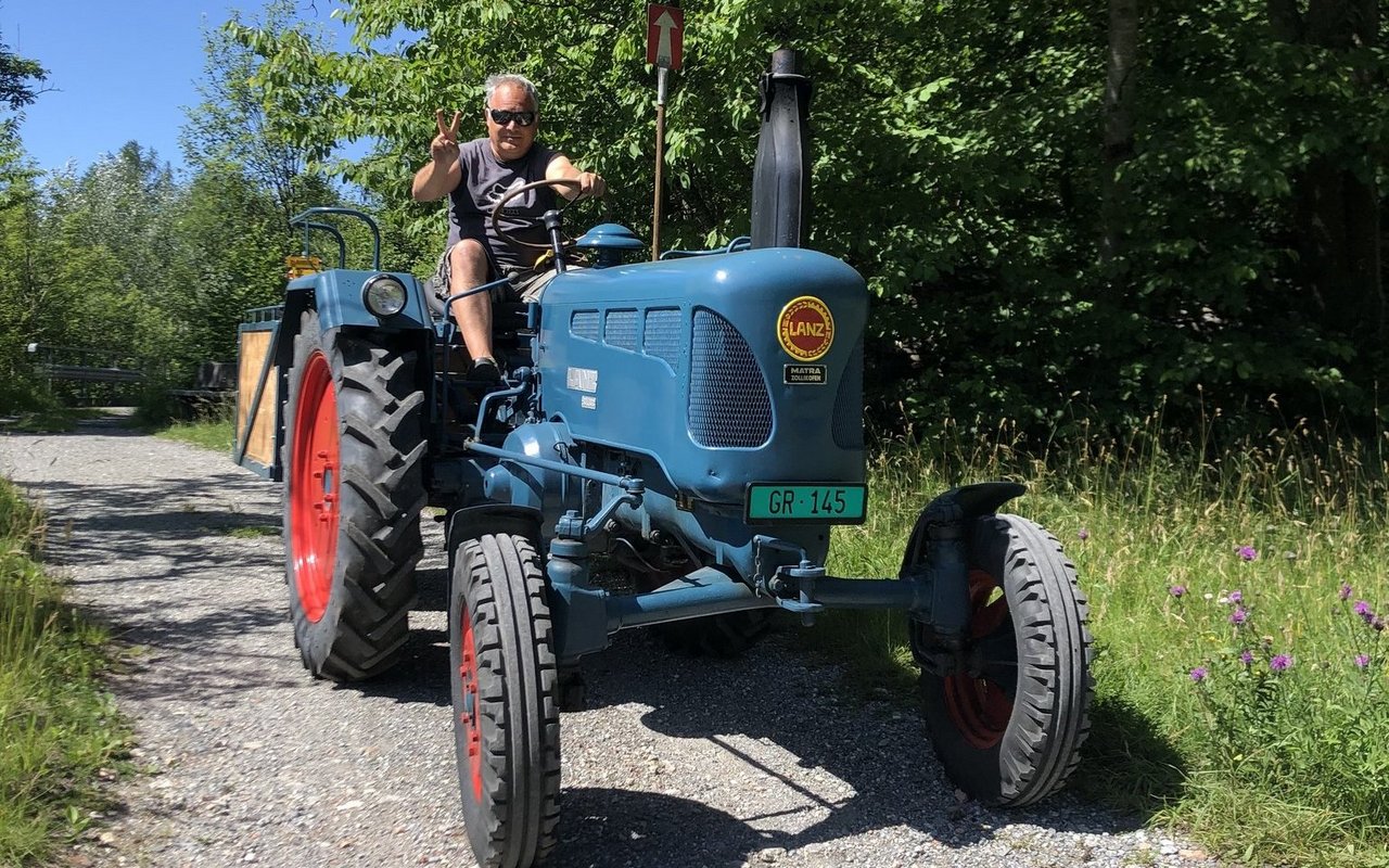 Gemeinsam mit drei Freunden habe er den Traktor von Zürich nach Graubünden gefahren, erzählt Christian Kindschi. «Wir waren mit E-Bikes, einem Motorrad und dem Traktor zwei Tage lang unterwegs über Land», erinnert er sich. Der Lanz Bulldog habe mit seinen 28 PS durchaus mithalten mögen mit den modernen Fahrzeugen, erzählt er.