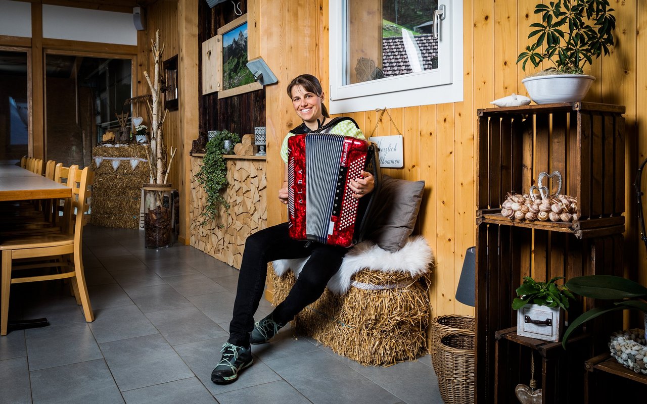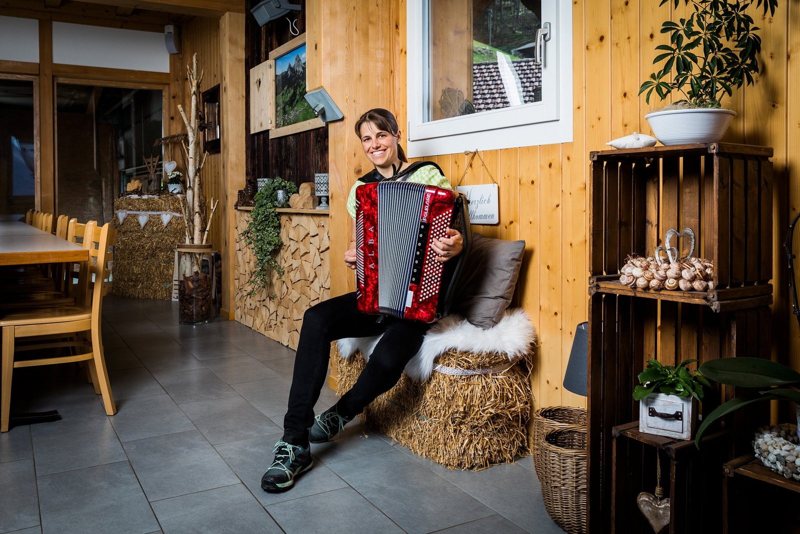 Eliane Schürpf hat die Handorgel für sich wieder entdeckt und im Winterhalbjahr viel geübt. Für das Video setzt sie sich hin und spielt ein Innerschweizer Ländlerstück. Sie vergisst für einige Minuten die Beiz und die Gerätschaften, die gerade nicht so funktionieren wie sie sollten. Sie vergisst die vielen Aufgaben, die auf sie warten. «Die Musik, die Berge, meine Familie und meine Freundinnen, das gibt mir immer wieder Kraft.»