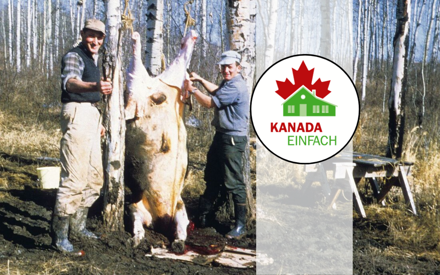 Wir Kinder kauern unter dem Tisch und stopfen uns die Ohren zu. «Der Schuss ist vorbei!», ruft unsere Mutter. Schnell purzeln wir hervor und rennen nach draussen zu unserem Vater. Wir haben zuvor geholfen, den Stier aus dem Stall zu führen. Nun liegt er tot, aber noch zuckend am Boden. Dad kniet daneben und schneidet den Kopf ab. Jetzt wird ein Seil um die Füsse des toten Körpers gelegt und über einen Balken…