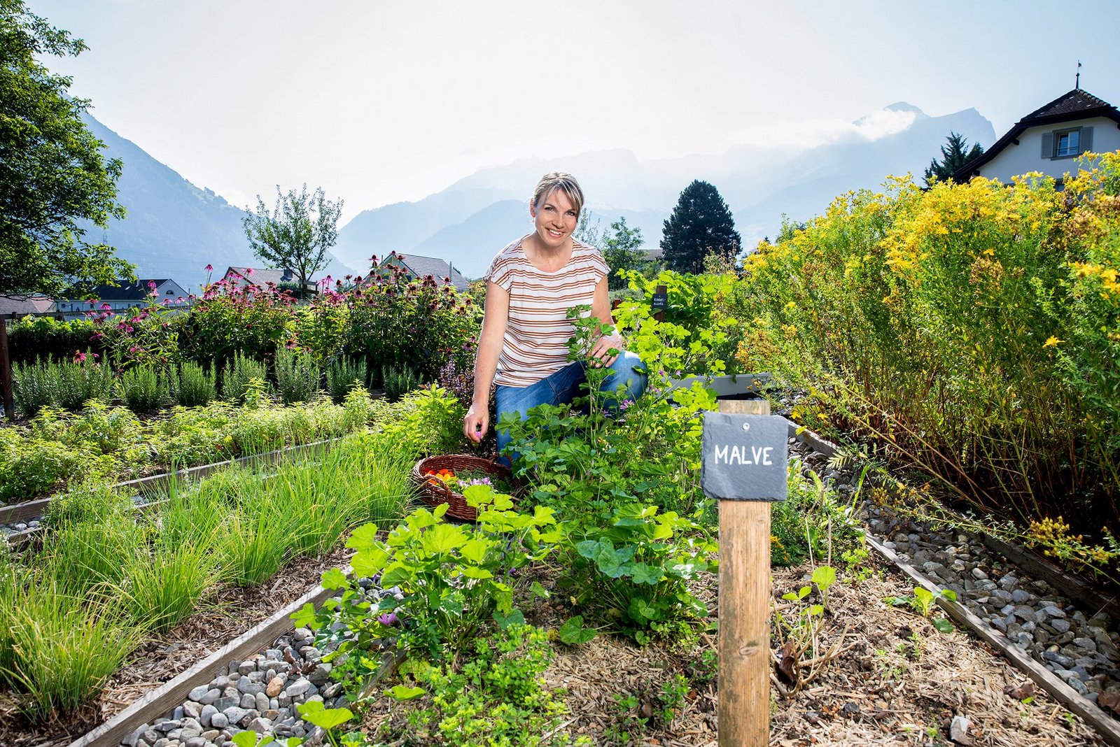Der Kräutergarten ist ihr Lieblingsort und der Lavendel ihr Liebling im Garten. Im Sommer blühen dort drei verschiedene Sorten in den Farben blau, weiss und rosarot. Aus dem Lavendel entsteht unter anderem reines ätherisches Öl, dass sie in der Schweiz destillieren lässt. Auch Melisse, Malve und Ringelblume wachsen im Garten. Das spezielle am Klosterbetrieb ist der Kräuteranbau und die Herstellung von Molkenpflegeprodukten wie Salben, Lippenpflege, Badekugeln oder Gesichtspflege. Sie werden mit vielen anderen Produkten im grossen Hofladen verkauft.