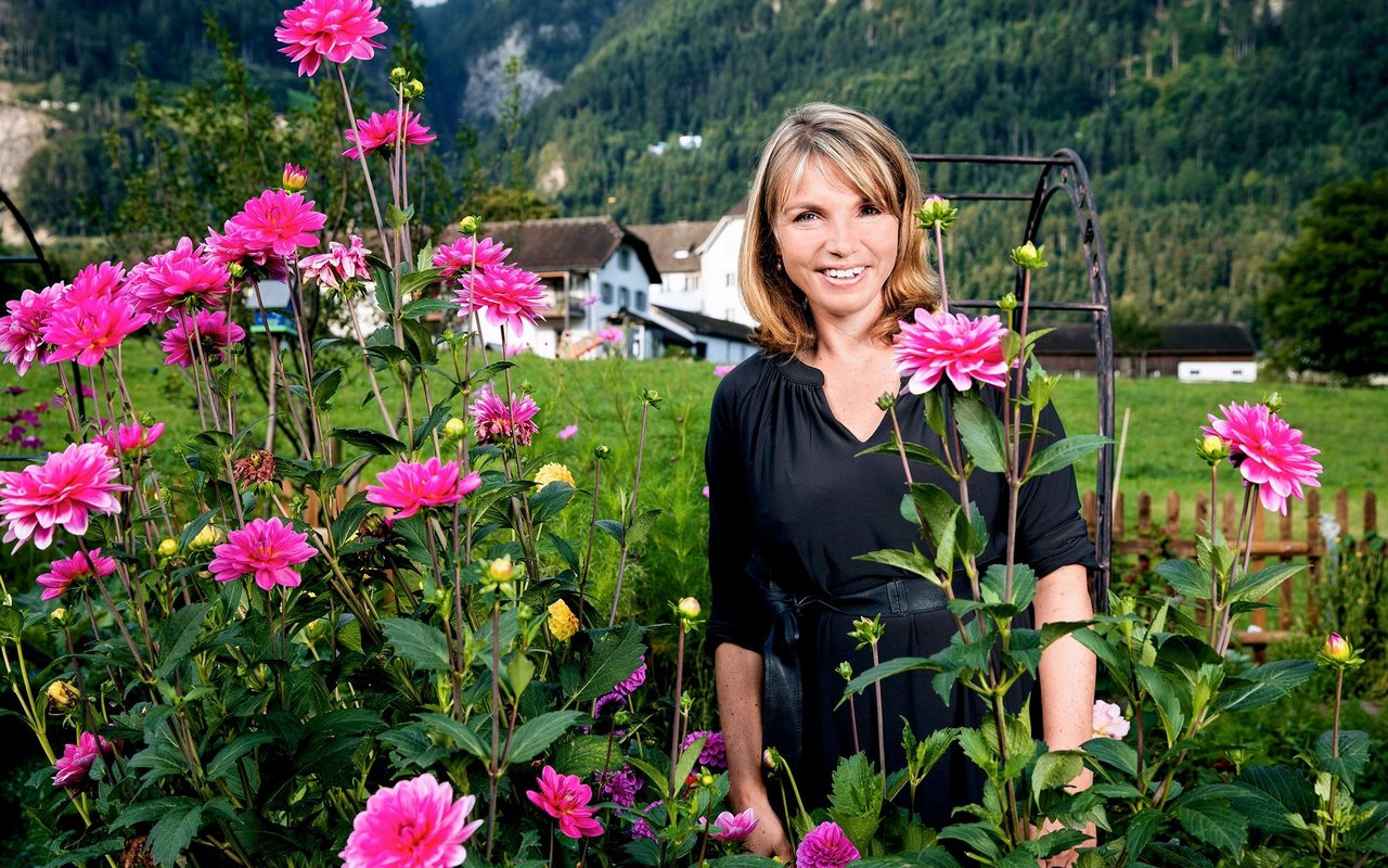 Das abgeerntete Lavendelfeld beim Kloster Lazarus in Seedorf, Kanton Uri, erscheint grau-grün in der herbstlichen Nachmittagssonne. Daneben erntet Landfrauen-Küche-Teilnehmerin Erika Arnold-Fässler Salbeiblüten. «Im Sommer bin ich täglich hier, um zu ernten und ich finde es schön, zu sehen, wie alles blüht und wächst», sagt die 44-jährige Bäuerin.