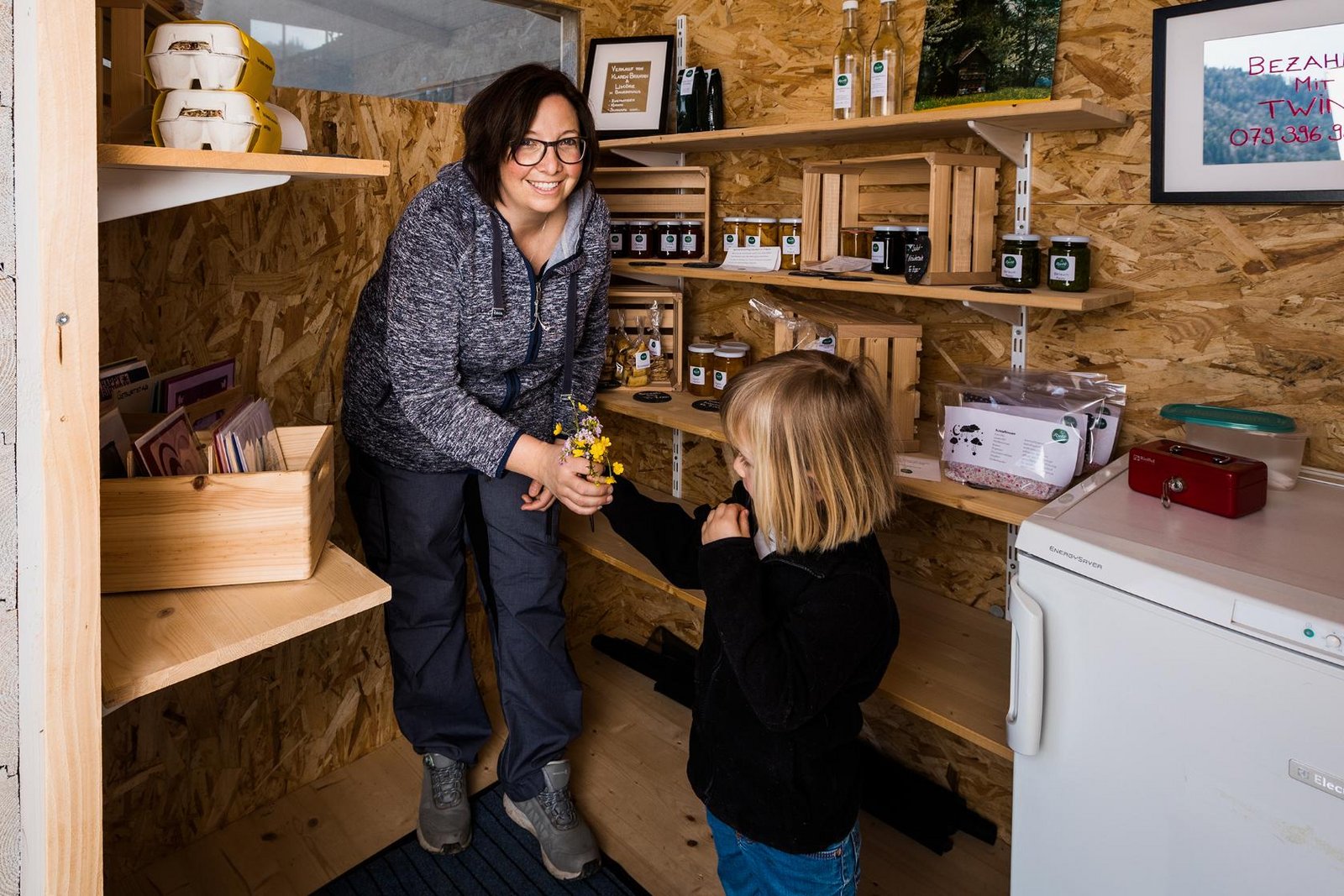 «Wir wollen sie gut betreuen und dabei auch etwas erreichen», sagt sie. Zum Beispiel, dass sie etwas lernen und die Arbeit mit der Zeit auch selbstständig machen können, dafür braucht es aber meist viele Wiederholungen. Für den kleinen Hofladen des Betriebs bereiten die Betreuten die Produkte vor, auch das eine sinnvolle Beschäftigung. Dort findet sich selbstgemachte Glace, Bärlauchpesto, Teemischungen aus Kräutern vom Hof und vieles mehr. [IMG 3]