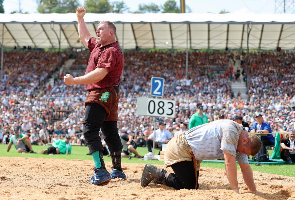 Dann folgen der Berner Michael Ledermann, der Nordwestschweizer David Schmid und noch ein Berner, nämlich Thomas Sempach. Für den praktizierenden Landwirt ist ein Auftritt an einem Eidgenössischen alles andere als neu. 2004 stand er in Luzern zum ersten Mal auf Eidgenössischem Sägemehl und reüssierte.