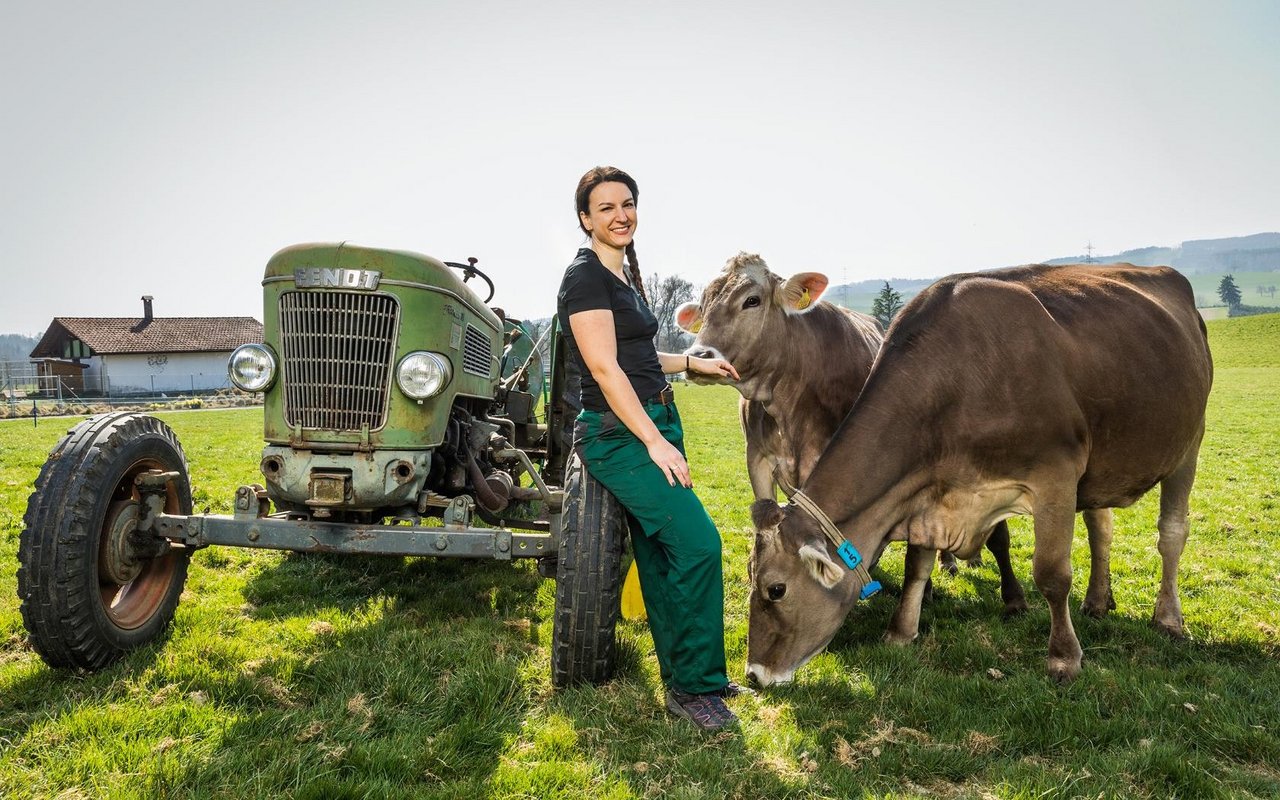 Das grosse Fenster ist im Esszimmer des Wohnhauses in Sins AG ein Blickfang: Die Sicht geht auf das gegenüberliegende Stallgebäude in der saftig grünen Landschaft. Und eigentlich ist es kein Fenster, sondern eine Tür: «Da ist noch ein Autounterstand mit Terrasse darauf geplant», bemerkt Daniela Huwiler. Noch sind nicht alle Arbeiten abgeschlossen, aber der Betrieb «I de Wannä» ist schon längst zu ihrem Zuhause…