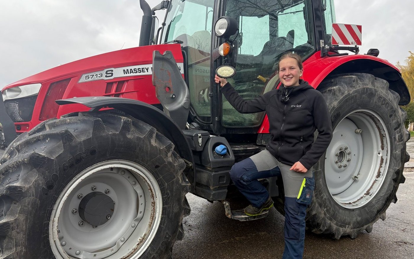 Michelle Fahrni stammt aus Rumisberg BE und absolviert derzeit ihr drittes Lehrjahr als Landwirtin EFZ bei Alexander und Claudia Schmitz in Wiedlisbach BE. «Der Seniorchef, Hanspeter Schmitz, ist mein Götti. Ich war schon als Kind hier oft in den Ferien.»