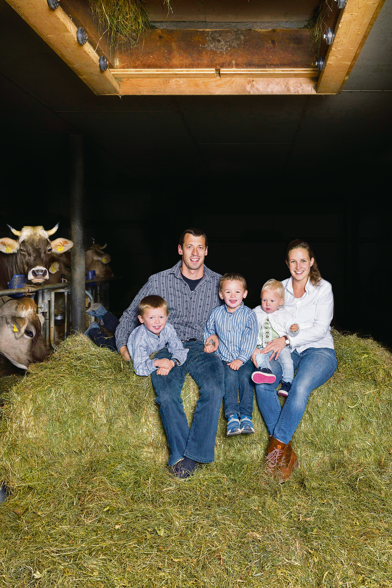 Einer, der vom «Zaunband- Speedy» gehört hat, ist Markus Hürlimann. Er baute Mosers Idee kurzerhand nach. Daneben bastelt er an eigenen Ideen. Eine davon, seine Heuschublade, gewann 2017 den Innovationspreis. Diese Schublade vereinfacht dem Landwirt aus Walchwil ZG die tägliche Fütterung seiner Kühe. Hürlimann zimmerte aus Holz und einem alten Antrieb eines Garagentors eine Schiebetür. Diese kann er per Knopfdruck öffnen, sobald er auf dem Heukran sitzt. Das Heu plumpst direkt ins Futtertenn, woraufhin die Luke sofort wieder geschlossen werden kann. Seit er den Innovationspreis gewonnen hat, entwickelte der Tüftler die Idee weiter. Er hat eine zweite Heuschublade gebaut, im Jungviehstall, der etwa 10 Minuten vom Hof entfernt liegt. Diese Schublade ist sogar mit einer Zeitschaltuhr ausgerüstet. Zur gewünschten Zeit öffnet sich also die Türe und die Tiere erhalten ihre Portion Heu. «So muss ich nur noch einmal am Tag im Stall vorbei, um zu füttern», erklärt Hürlimann zufrieden.