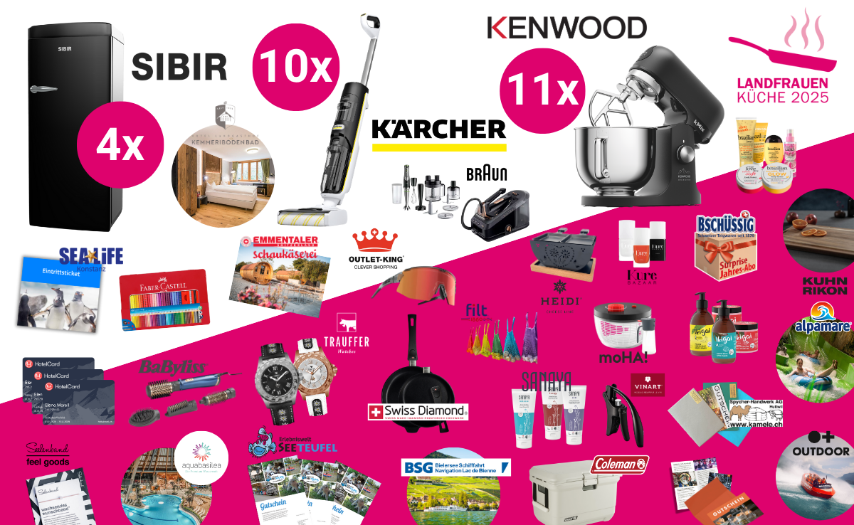Jede Woche stellen wir Ihnen eine Quizfrage zu den Kandidatinnen und verlosen tolle Preise im Gesamtwert von über 19’000 Franken, darunter 4x einen Retrokühlschrank von Sibir, 10x einen Saugwischer von Kärcher, 11x eine Küchenmaschine kMix Swiss Edition von Kenwoodund vieles mehr.