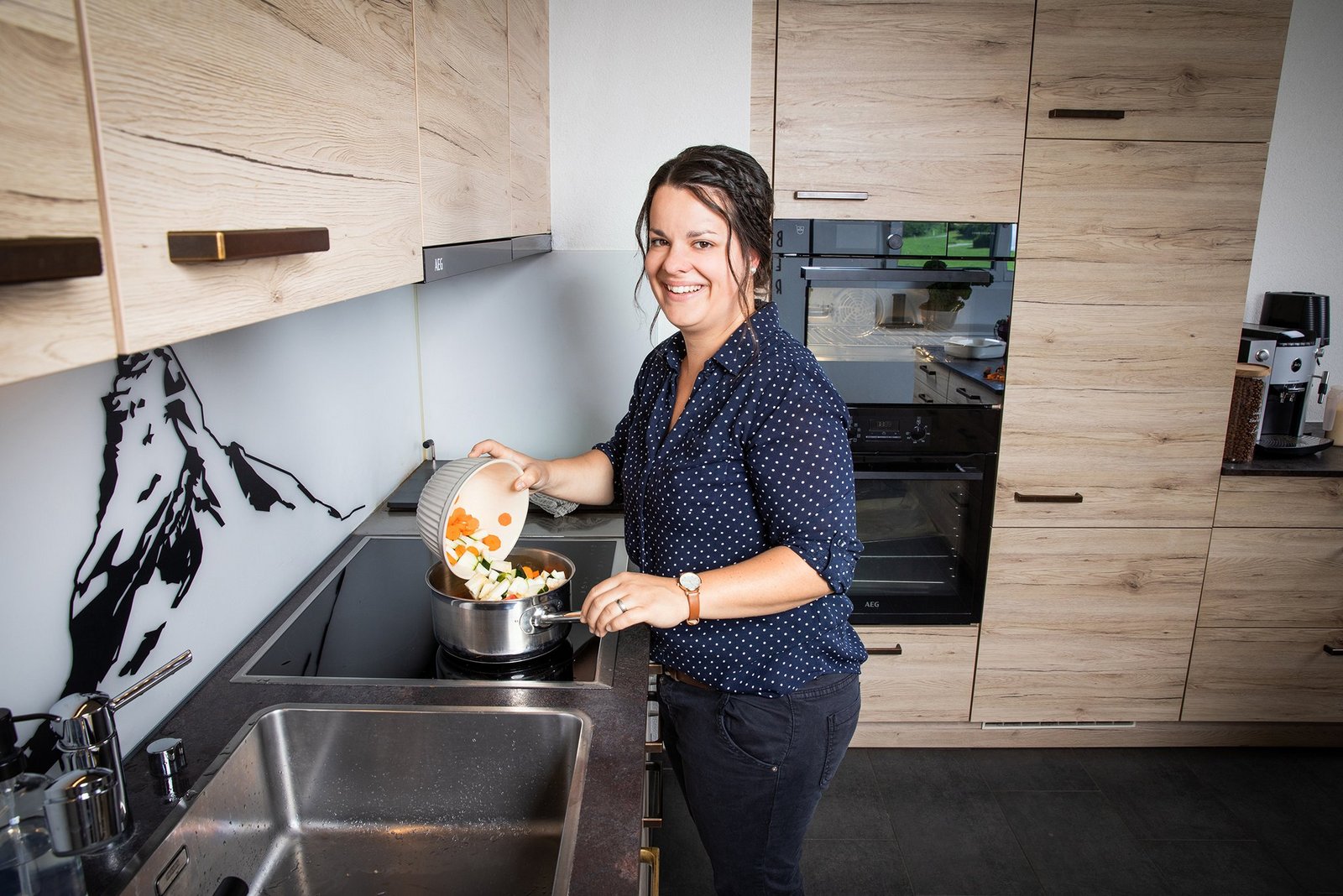 «Als Kind habe ich nie verstanden, warum meine Mutter die Rezepte nicht genau befolgt hat», erinnert sich die Solothurnerin. Heute hält sie es selbst genauso und improvisiert z. B. wenn eine Zutat gerade nicht mehr vorrätig ist. Leider komme es nicht selten vor, dass ein abgeändertes Gericht gut gelingt – die Anpassung aber bis zum nächsten Mal vergessen ist. Generell koche sie währschaft, ausgewogen und abwechslungsreich. Mit sich selbst sei sie deutlich kritischer als mit anderen. Daher habe sie auch beim Auswärtsessen mit Freundinnen selten etwas auszusetzen.