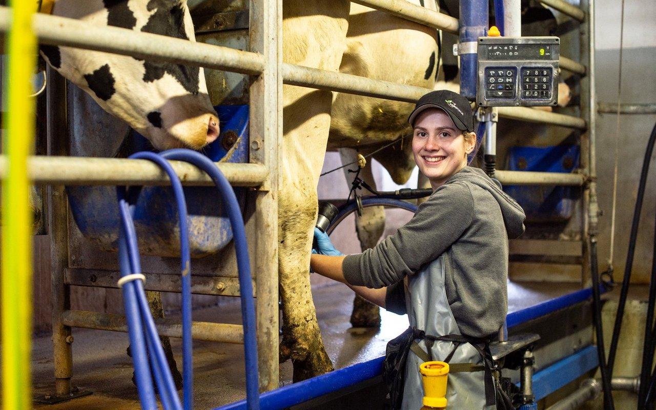 Deine liebste Arbeit? Kühe melken und bei den Kälbern einstreuen und deren Lebensfreude beobachten.