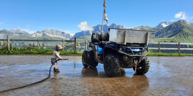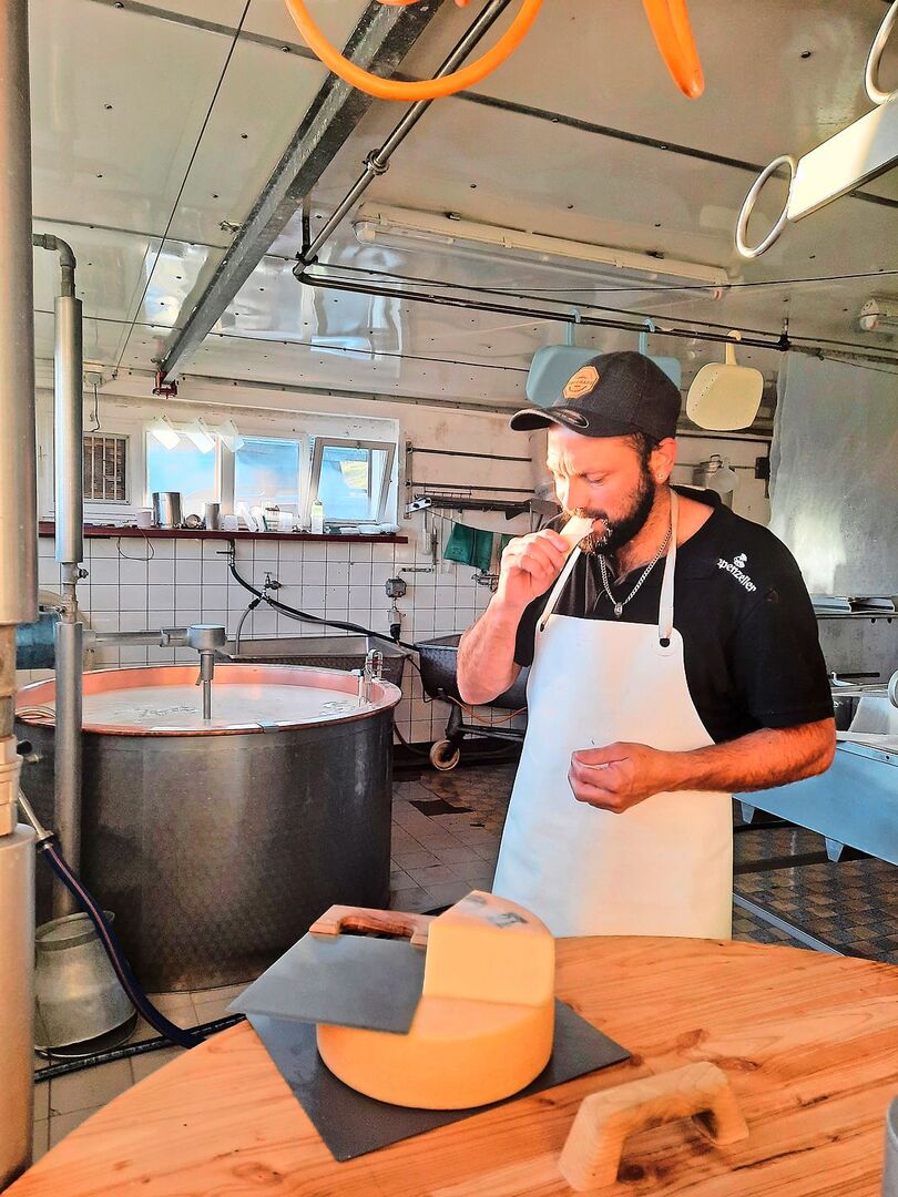 Seit dem 16. Juni produzieren Senn Reto und Zusenn Andreas täglich zwischen 18 und 24 Laibe Bündner Alpkäse. Die Anzahl Käse ist abhängig von der Milchmenge im Kessi. Für einen Alpkäse von fünf Kilogramm benötigt man ungefähr 50 Liter Alpenmilch. Das Käsen ist mit viel Handarbeit und Leidenschaft verbunden. Bis letzte Woche waren jeden Tag beide Käsekessi in Betrieb. [EXT 1] Zeitverschoben zogen Reto und Andreas…