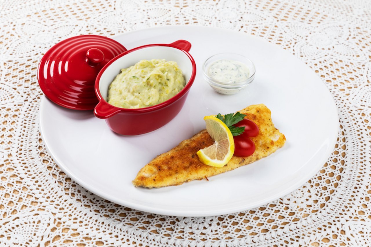 -- NO IMAGE --h2>Hauptgang: Panierte Forellenfilets mit Tartarsauce und Kartoffel-Rosenkohl-Stampf -- NO IMAGE --/h2>