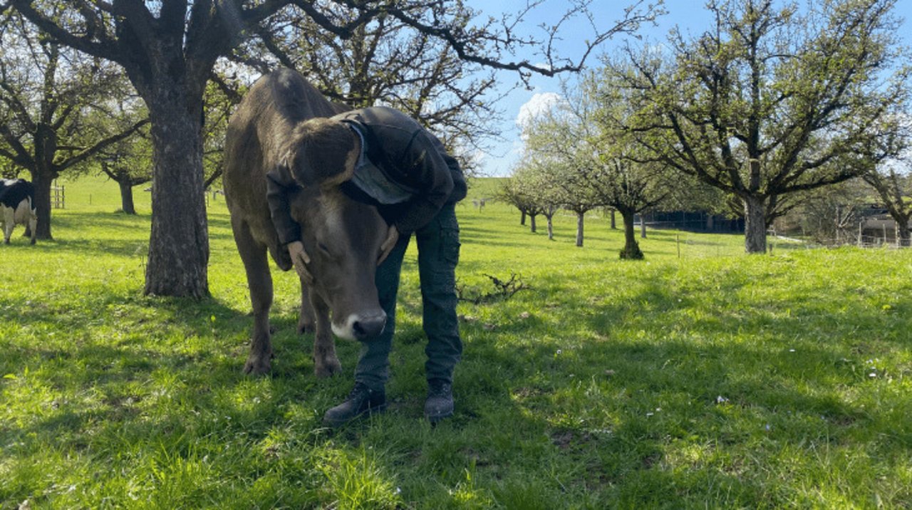 Gabriel Frei wuchs auf einem Landwirtschaftsbetrieb in Ehrendingen im Kanton Aargau auf. Kühe gehören aber erst seit seiner Zweitausbildung zum Landwirt zu seinen Lieblingstieren. «Es ist einfach etwas anderes, ob man mit ihnen arbeitet oder lediglich neben ihnen wohnt», lernte er und beobachtet die Braunviehherde von Weitem. In der Weide unterhalb der Obstanlage machen sich die Kälber bereits für das anstehende Tränken bemerkbar. Immer noch grasen die Galtkühe zwischen den schon fast kitschig blühenden Kirschbäumen. Beinahe erschrocken stellt er fest, dass er diesen schönen Ort am Hügel von Bertschikon ZH nie kennengelernt hätte, wenn er die Lehre nicht angetreten wäre.