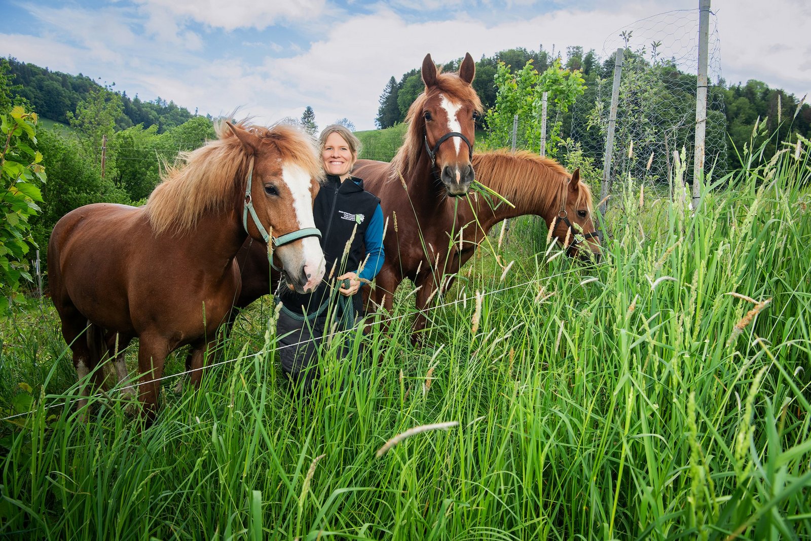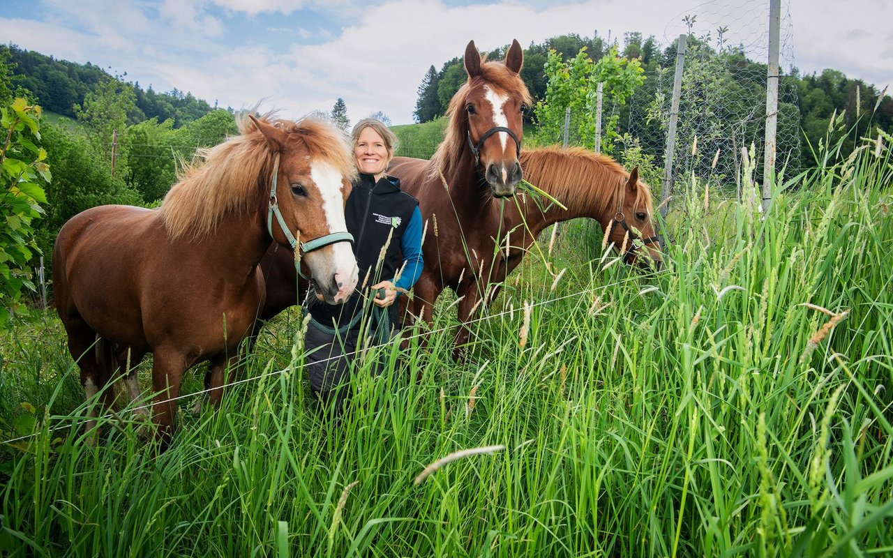 Dem Ehepaar ist es ein grosses Anliegen, Kindern den Zugang zur Landwirtschaft zu ermöglichen. «Auch Kinder aus nicht bäuerlichen Familien sollen einmal eine Ziege oder Kuh streicheln und im Heu toben dürfen», betont Melanie Ramser. Als Anbieter eines Ferienpass-Angebotes betreut sie während der Ferien an mehreren Tagen pro Woche bis zu 20 Kinder zwischen fünf und zwölf Jahren auf dem Betrieb. Morgens wird etwa Brotteig geknetet, im Ofenhaus eingefeuert, und es werden Vorbereitungen für das Mittagessen getroffen. Dabei dürfen es auch einmal selbstgemachte Pommes Frites oder Pizza sein. Bei allem werden die Kinder eingebunden und sie können mithelfen oder auch den Betriebsleiter auf dem Traktor begleiten. Am Nachmittag stehen meist Ausritte auf dem Programm. Dazwischen bleibt viel Zeit zum Spielen, Zusammensein mit den Tieren und eben auch dem Toben auf dem Heustock.