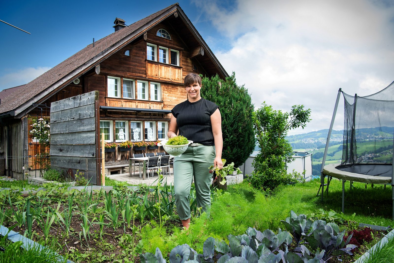 Beruflich hat Miriam Knechtle zuerst ein Haushaltslehrjahr auf einem Bauernhof gemacht und danach begonnen, in einer Metzgerei zu arbeiten. Letzteres macht sie auch heute noch, einen Vormittag pro Woche. Auf dem Hof hilft die Allrounderin überall dort, wo es sie braucht. Ansonsten ist sie für die Kinder, den Haushalt und den Garten zuständig. Letzteren findet sie super: «Den Kindern zu zeigen, dass aus einem kleinen Samenkorn irgendwann etwas Grosses wird, finde ich sehr wertvoll.» Mit den eigenen Produkten zu kochen, seien dies die Eier ihrer Hennen, das Fleisch der eigenen Rinder oder das Gemüse aus dem Garten, findet sie wichtig.