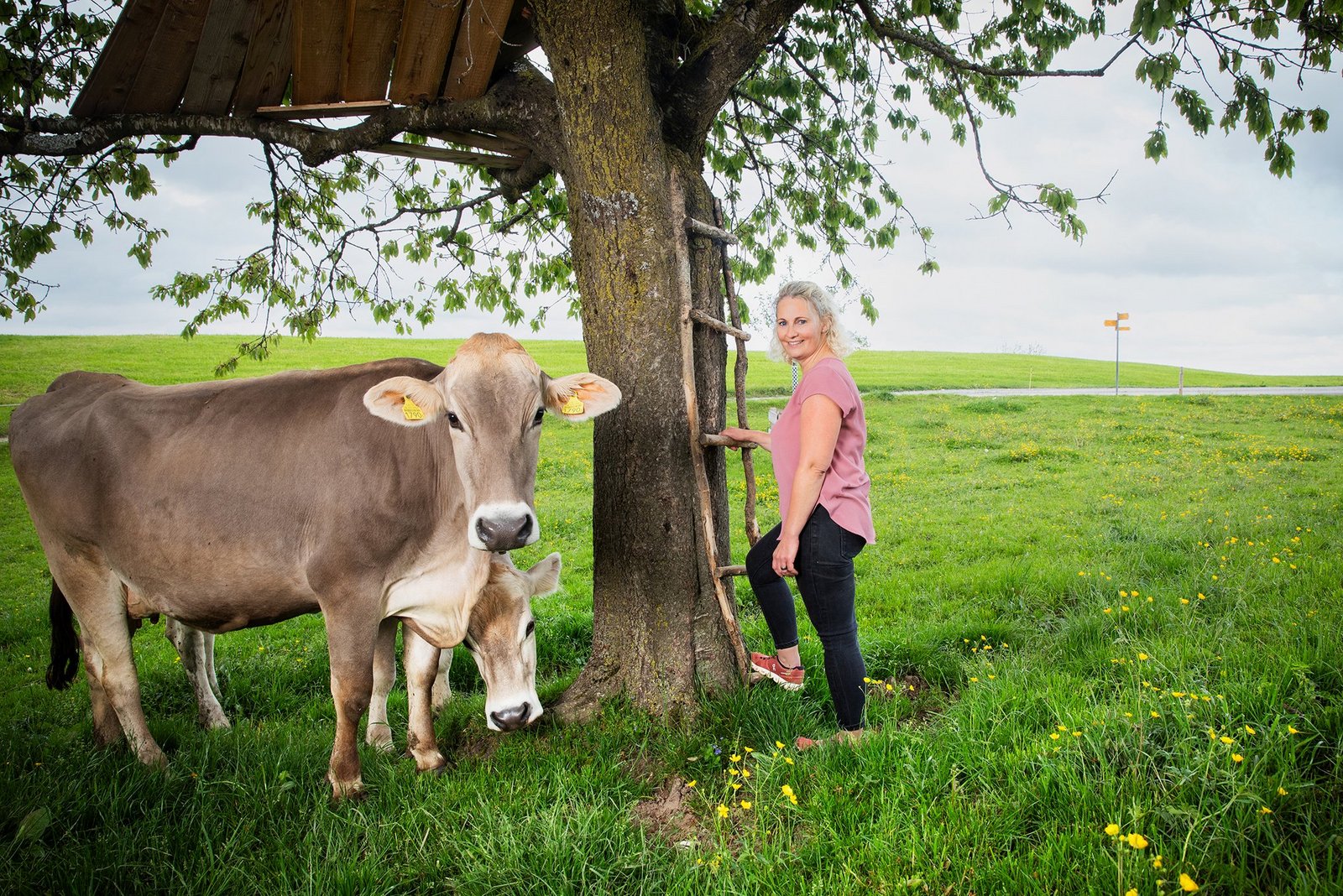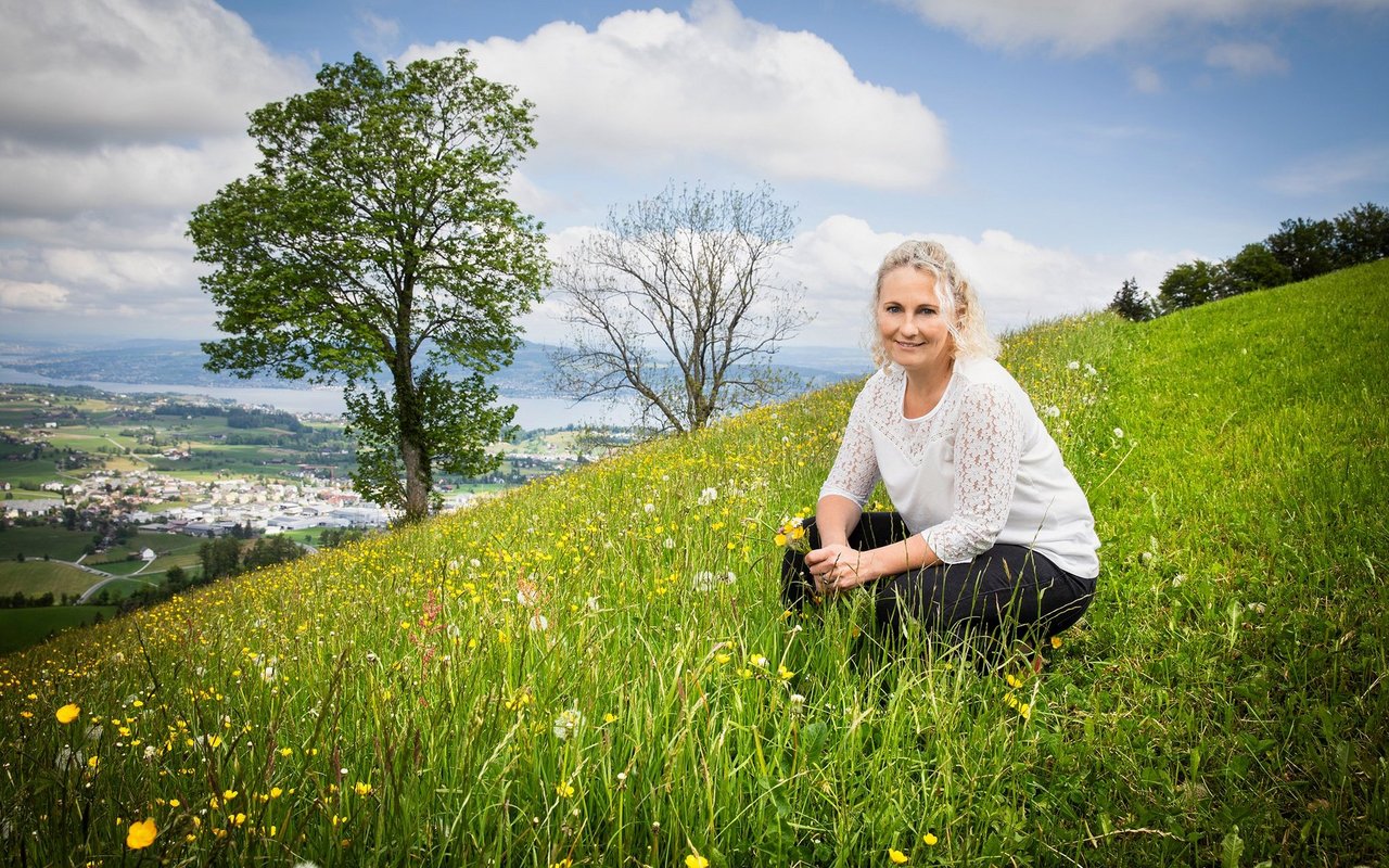 Auf dem Rossberg, auf 950 Meter über Meer, erschweren gerade dicke Nebelschwaden die Sicht auf den Zürichsee. Hier, an ihrem Lieblingsort, einer kleinen Grillstelle, setzt sich Monika Nauer auf eine Holzbank. «Wir sehen hier oft die schönsten Sonnenuntergänge», erzählt sie, «abends, nach getaner Arbeit, machen wir oft unsere Hof-Runde und führen gute Gespräche hier – das gehört zu unserem Tagesabschluss und ist ein richtiges Abendritual geworden.»