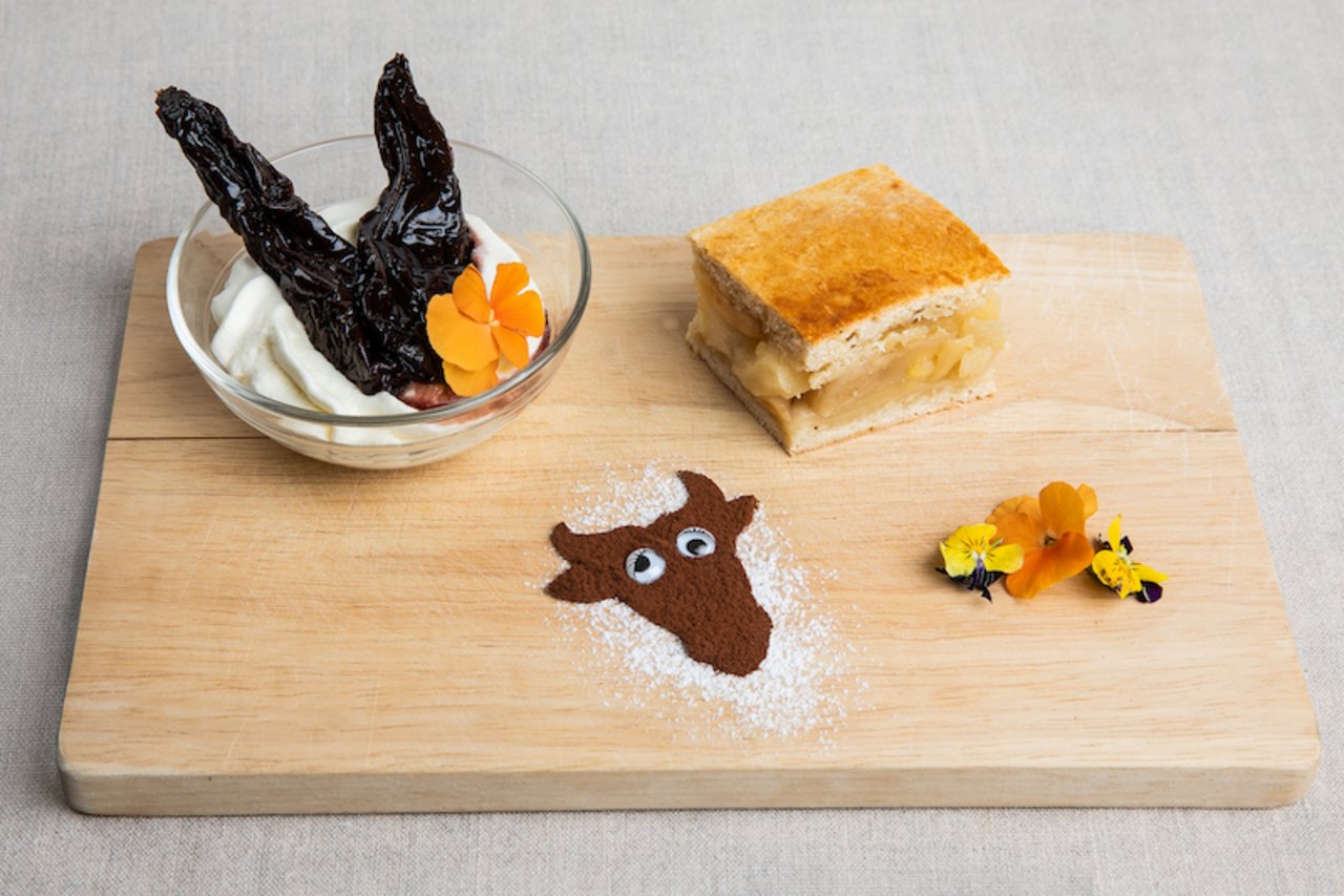 - Mit dem restlichen Sirup, Rahm und Blüten garnieren.