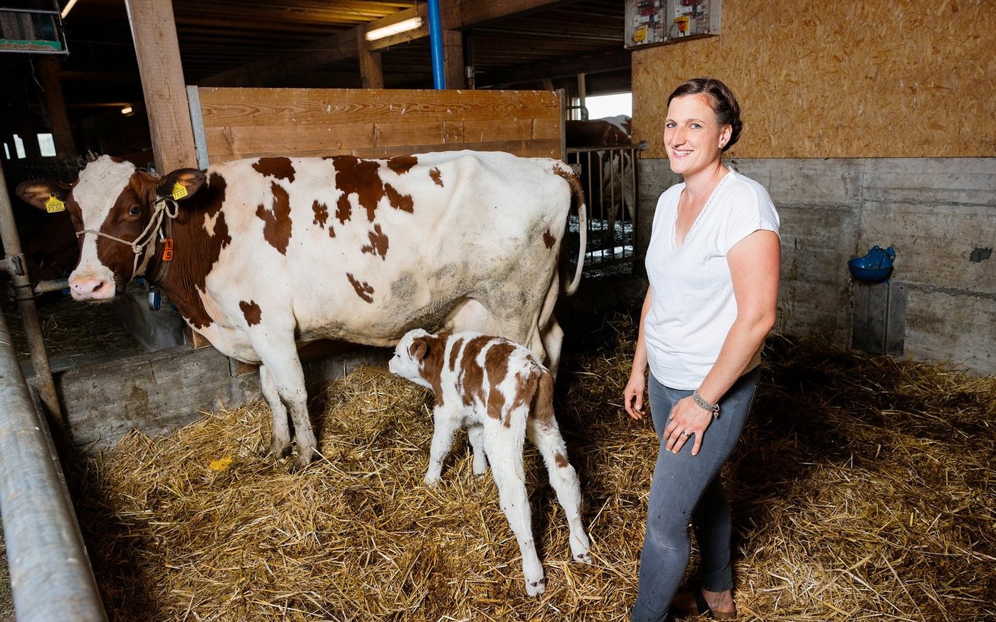 Zunächst war ihr Mann skeptisch – vor allem, was die Milchleistung betraf. «Aber es hat ihn dann auch nicht mehr losgelassen», sagt Stefanie Hitz. Das Paar besuchte andere MuKa-Betriebe, informierte sich und stellte schliesslich um. «Seither haben wir gesündere Kälber, die schneller wachsen. Wir mussten in diesem Jahr nur ein Kalb behandeln. Und es macht einfach Freude, Kälber und Mütter zusammen auf der Weide zu sehen.»