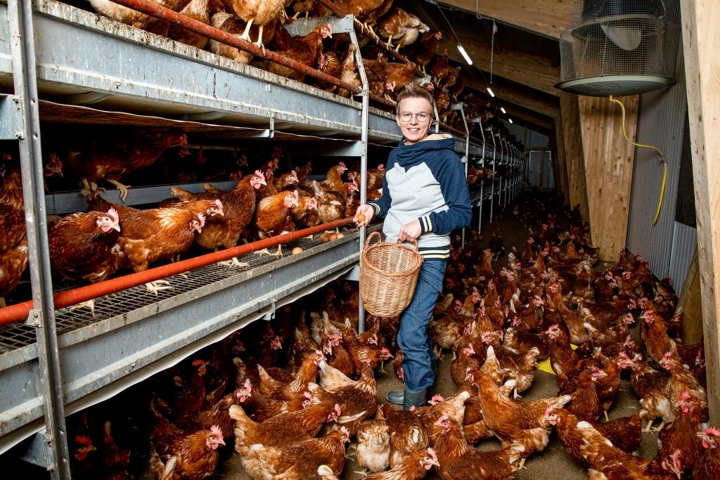 Für die Hühner ist hauptsächlich Helen Imhof zuständig. Morgens um halb sechs steht sie jeweils auf und geht als Erstes ins Hühnerhaus, um in einer ersten Runde die Eier einzusammeln, zu beschriften und auf Eier-Paletten zu packen. Sie werden zwei Mal pro Woche im Laufe des Vormittags abgeholt.