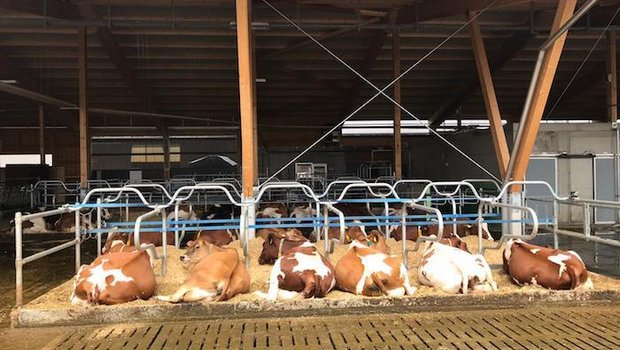 Der "Rüttistall" bietet 62 Milchkühen und 30 Kälbern Platz und ist mit einem 2x4-Tandem-Melkstand sowie einem Fütterungs- und Entmistungsroboter ausgestattet.