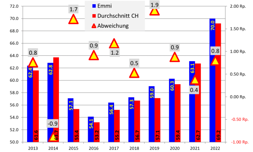 Die gestiegenen Kosten und das kleinere Angebot an Milch hätten in Europa und in der Schweiz zu den höchsten Milchpreisen seit dem Ausstieg aus der Milchkontingentierung geführt, sagte Schlegel. «Aber gerade intensiv produzierende Betriebe mit hohen Input-Kosten gehören zu den Verlierern in der Milchwirtschaft im letzten Jahr, weil die gestiegenen Kosten die Milchpreissteigerungen bei diesen Betrieben oft übertra­fen», so die Präsidentin.