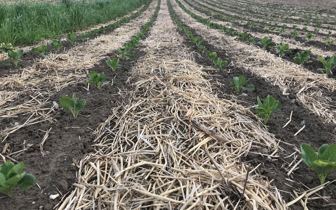Abschätzen lässt sich der organische Bodenaufbau beispielsweise über die Humusbilanz. «Die hängt auch davon ab, was und wann etwas gemacht wird», meint der Fachmann. Werden Ernterückstände eingearbeitet, gehe «die Post ab», der Abbau also schnell von statten. Bleiben sie an der Oberfläche, gehe der Abbau langsamer. Unabhängig vom Anbausystem ist es gemäss Streit wichtig, nicht auf den nackten Boden zu düngen – es braucht eine lebende Kultur, um Gülle oder Kompost aufzunehmen. Überhaupt wird die Bodenbedeckung wie oben erwähnt bei der Konservierenden Landwirtschaft grossgeschrieben, sei es durch eine (Zwischen)Kultur oder Ernterückstände. Dabei gelte, je mehr Stroh nach der Ernte zurückbleibt, desto besser. Dies aber mit Einschränkungen: «Mit weniger ist die Saat einfacher. Und ich würde nicht Stroh zukaufen, weil es als Decke auf dem Acker liegen bleibt». Streit empfiehlt, nur mit einer geeigneten Sämaschine, beispielswies mit einer Scheibenscharmaschine und mindestens 200 kg Druck pro Schar zu arbeiten, damit das Saatgut sicher auf den Boden kommt.