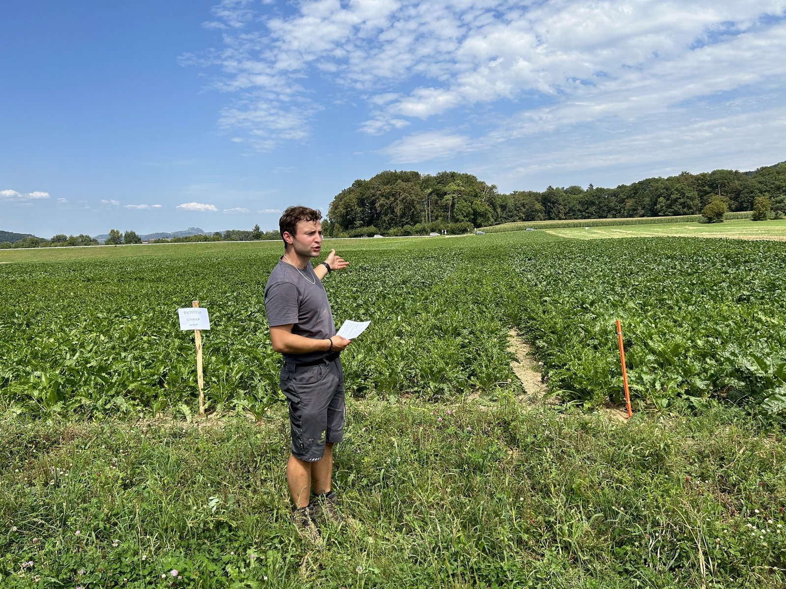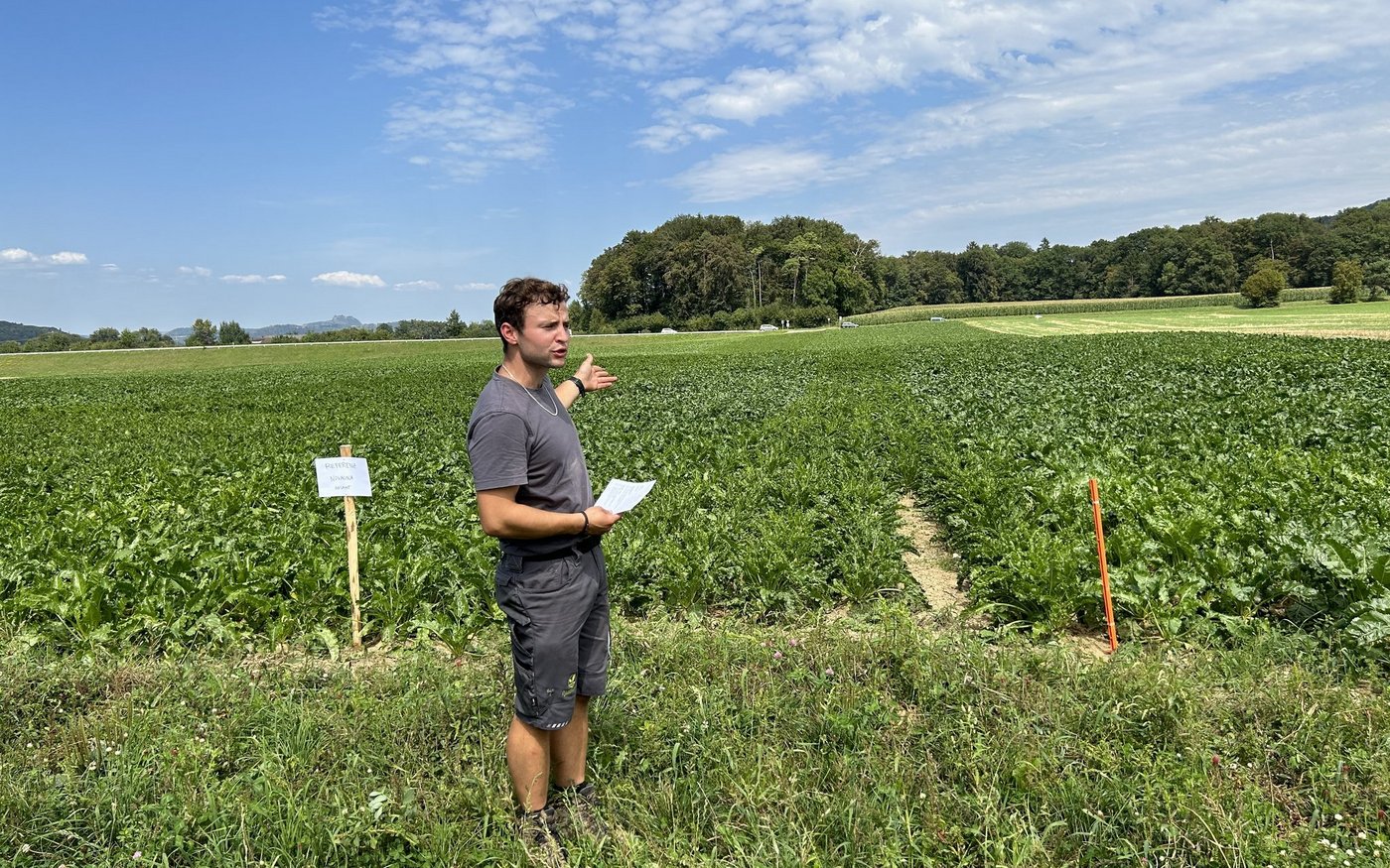 Getreide, Mais, Soja und eben auch Zuckerrüben baut Urban Dörig auf seinem Betrieb Katharinental in Diessenhofen TG auf Dämmen an. «Das hat 2022 bei Zuckerrüben gut funktioniert. Heuer, mit dem nassen Frühling, war es schwieriger», sagte Dörig am Biozuckerrübentag. Nötig waren rund 170 Stunden Handarbeit. «Das kann sich mit dem Preis für Umstellrüben nicht rechnen», sagte Dörig, der im zweiten Umstelljahr ist. Aber…