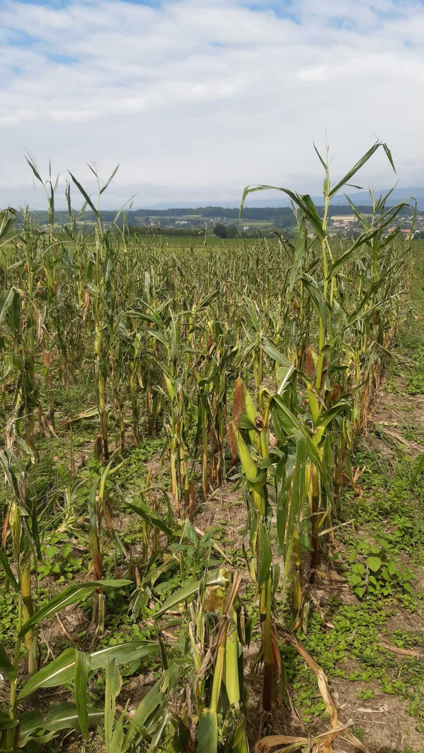Nach heftigen Unwetter mit Hagel, Starkregen und Sturm vom 28. Juni sowie vom 24. bis zum 26. Juli sieht es auf den Maisparzellen wie auf einem Schlachtfeld aus. Die Blätter präsentieren sich durchlöchert oder zerrissen. Die Pflanzen sind abgeknickt und die Fahne zerstört. Die Kolben sind unterentwickelt. Weil die Befruchtung fehlt, bleiben sie leer. «Von meiner Ernte sind je nach Parzelle etwa 70 bis 90 Prozent…