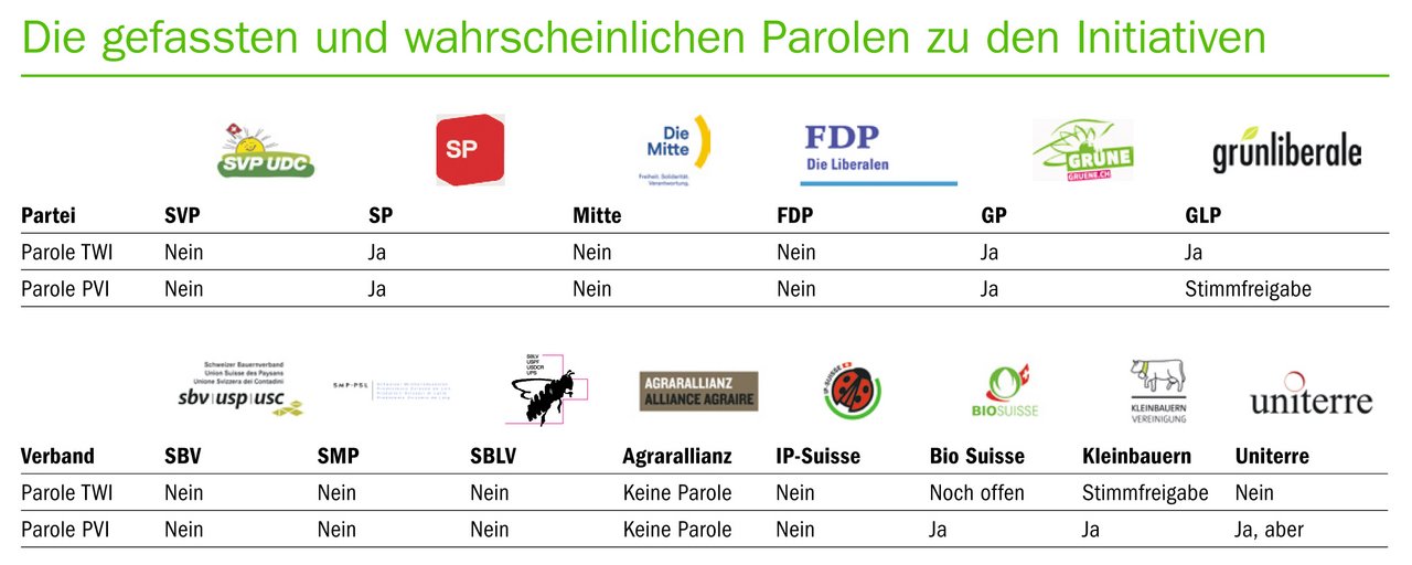 Die Parolenfassung zu den beiden Pflanzenschutz-Abstimmung kommt langsam in die Schlusskurve. Dabei zeigt sich angesichts der aktuellen Beschlüsse erneut, dass der Weg zu zwei Nein bei der Abstimmung vom 13. Juni kein Spaziergang werden dürfte. 45 % Ja zur TWI bei der FDP Letztes Wochenende haben sich mit der FDP und den Grünliberalen (GLP) zwei gewichtige Player unter der Bundeshauskuppel entschieden. Die…