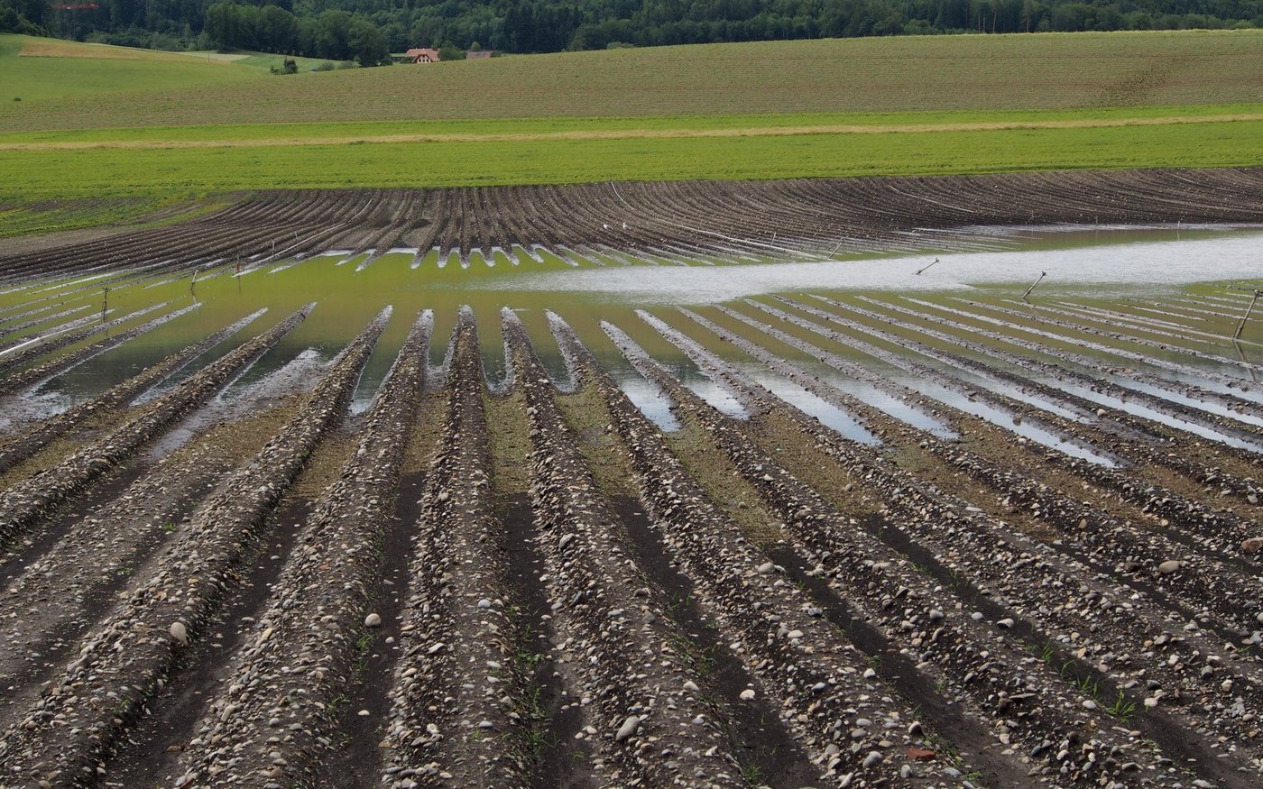 Nach den extrem trockenen Sommermonaten im vergangenen Jahr ist der Niederschlag den Produzentinnen und Produzenten jedoch sehr willkommen. Die Obst- und Weinproduzenten können etwas aufatmen. Die Blüte hat später eingesetzt und die Gefahr von Spätfrostschäden hat sich damit verringert. Diese Wetterlage ruft die dreimonatige, ungewöhnlich niederschlagsreiche Periode des Sommers in 2021 in Erinnerung. Heftige Unwetter, begleitet von Hagel und Starkregen, verursachten aussergewöhnlich hohe Schäden an landwirtschaftlichen Kulturen.