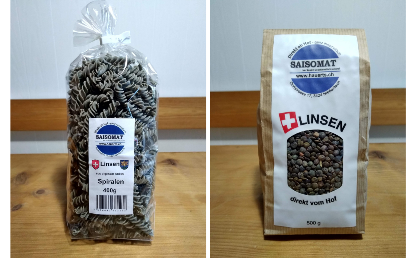 Vermarktung: Direkt via «Saisomat» (Automat mit saisonalem Sortiment aus der Region), Linsen als Körner oder Teigwaren auch in regionalen (Hof)läden